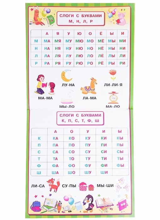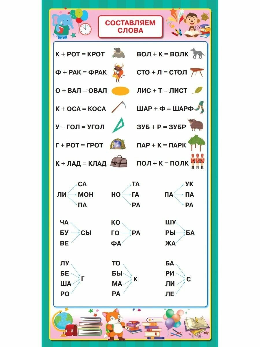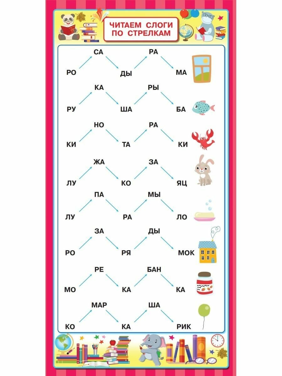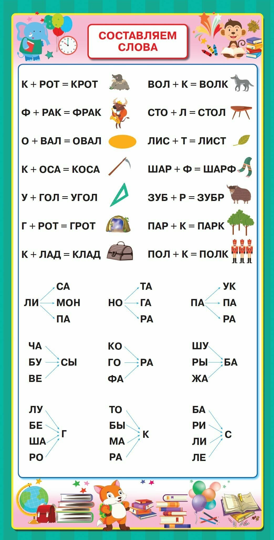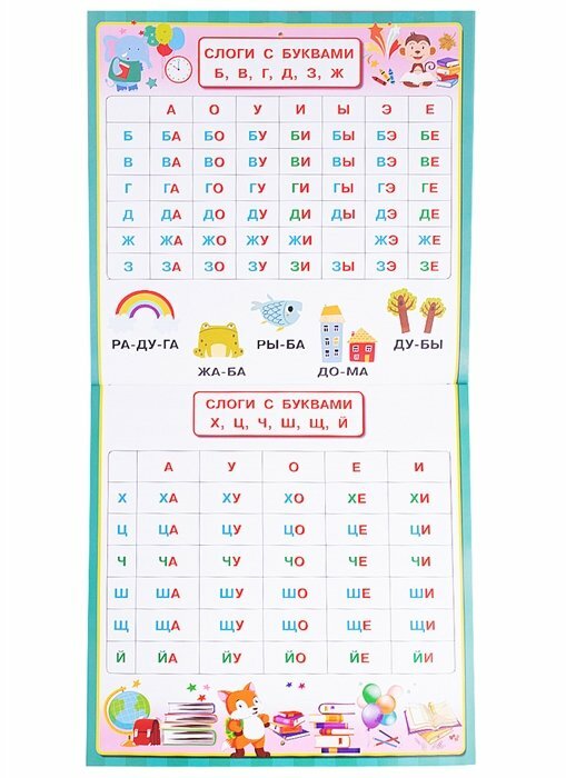 Замечательно пособие, подойдёт учителям , воспитателям детского сада, репетиторам и, конечно, родителям юных читателей. Таблица достаточно большая и содержит множество интересных заданий с картинками, что облегчит ребёнку задачу, а так же подтолкнёт к правильным выводам. Материал изложен очень последовательно, систематизированно и ярко для восприятия, что немаловажно при работе с детьми!