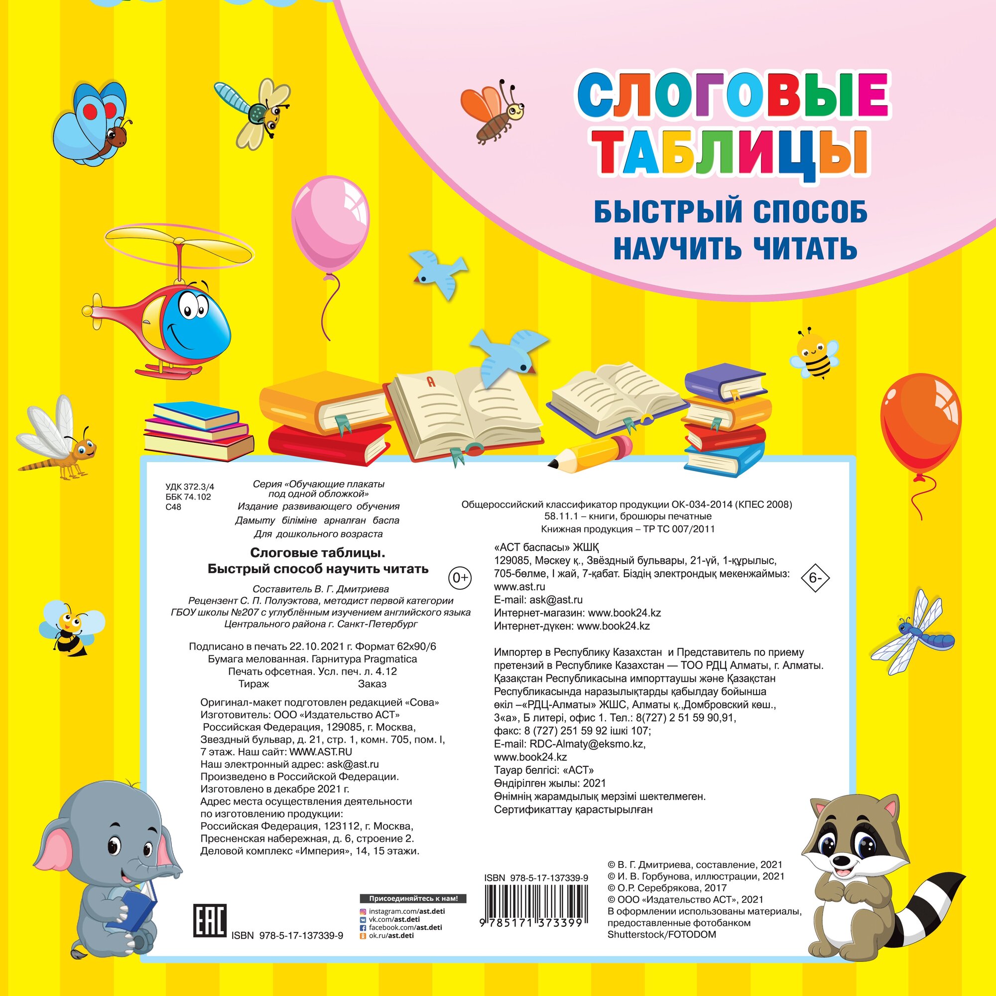 Слоговые таблицы. Быстрый способ научить читать (Дмитриева Валентина Геннадьевна); Сова. Малыш (Обучающая и развивающая литература), 2021