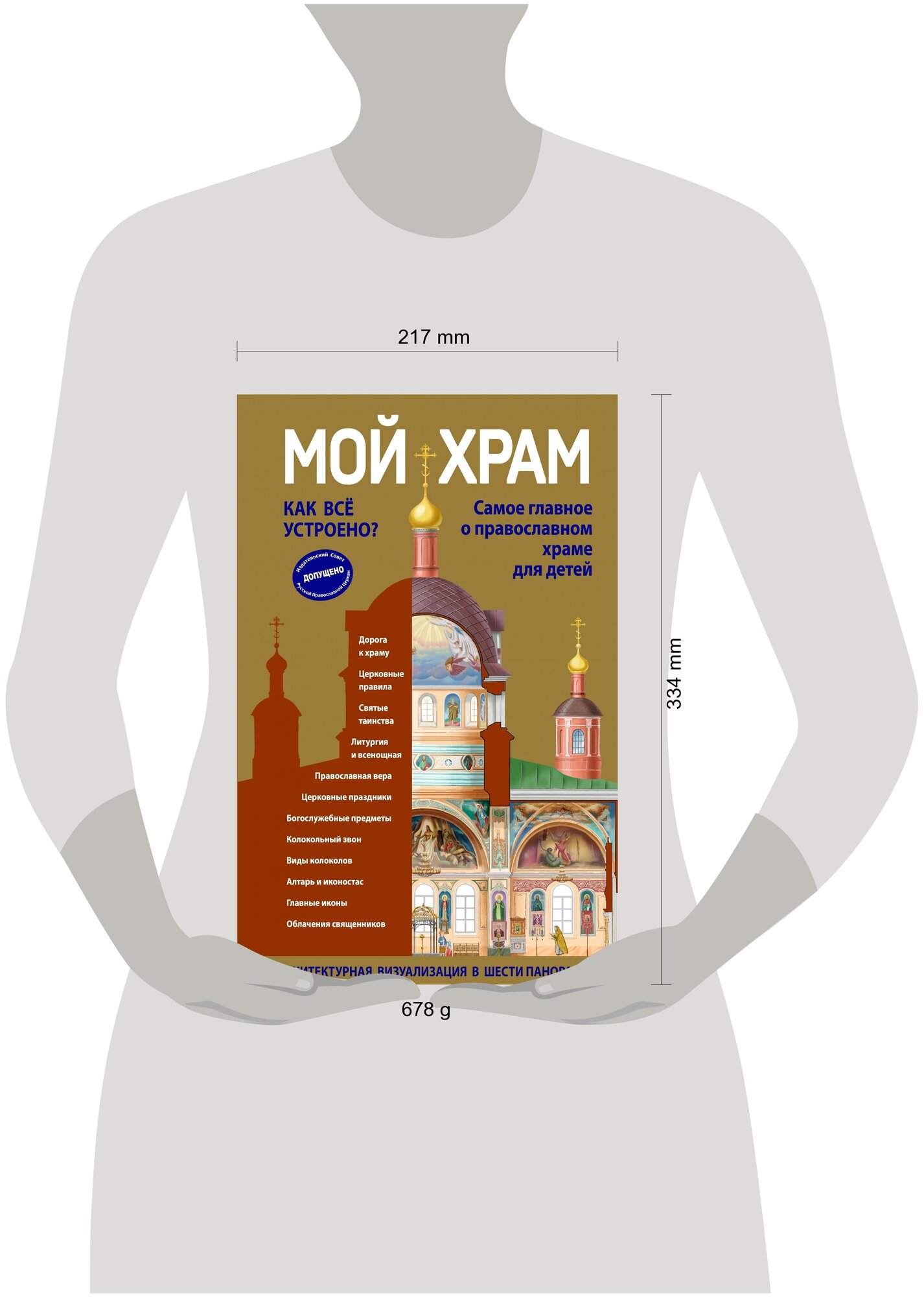 Теперь все сомнения позади! Самое главное о православном храме вы найдете в книге «Мой храм. Как все устроено?». Просто и понятно в ней рассказано о православной вере, иконах, колокольном звоне, церковных праздниках и многом другом. Замечательный художник, архитектор Игорь Панков профессионально и подробно воссоздал в этой книге эпизоды церковной жизни. Шесть огромных панорам, встроенных в книгу, широко раскрываются. На них вы увидите, как устроен храм, понаблюдаете за тем, как совершаются богослужения и церковные Таинства, познакомитесь с особыми священными предметами.