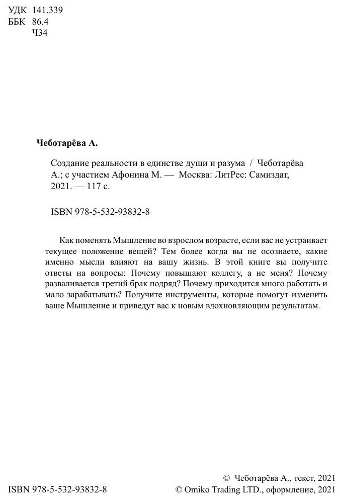 Сервис сравнения цен СкидкаГИД предлагает сравнить цены на товар «Книга: Создание реальности в единстве души и разума (Анна Чеботарёва); Автор, 2021»