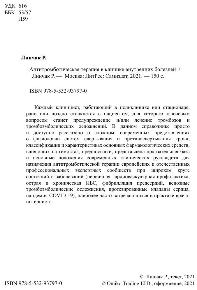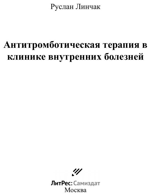 Антитромботическая терапия в клинике внутренних болезней (Руслан Линчак); Автор, 2021