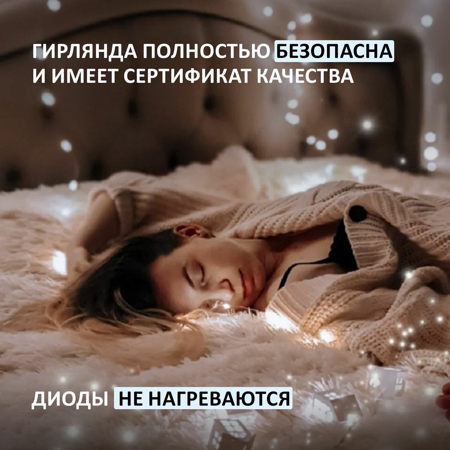 Прекрасный декоративный элемент, светящийся разными огоньками и создающий атмосферу праздника и уюта. Это отличный способ акцентировать внимание на отдельных предметах интерьера, создать неповторимый арт-объект или использовать в качестве дополнительной подсветки. Гирлянда состоит из тонкого провода длиной 2 метра с расположенными на нем долговечными светодиодами. Отличительной особенностью данной гирлянды являются более крупные диоды.