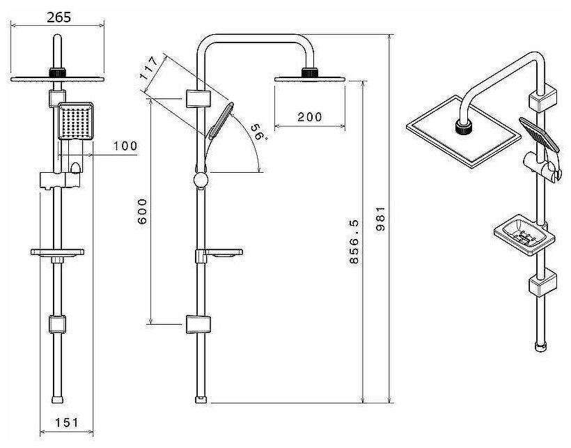 | ВКоробке | Душевая стойка - 1 шт. Верхний душ - 1 шт. Лейка - 1 шт. Шланг - 1 шт. Мыльница-полка - 1 шт. Инструкция - 1 шт. |