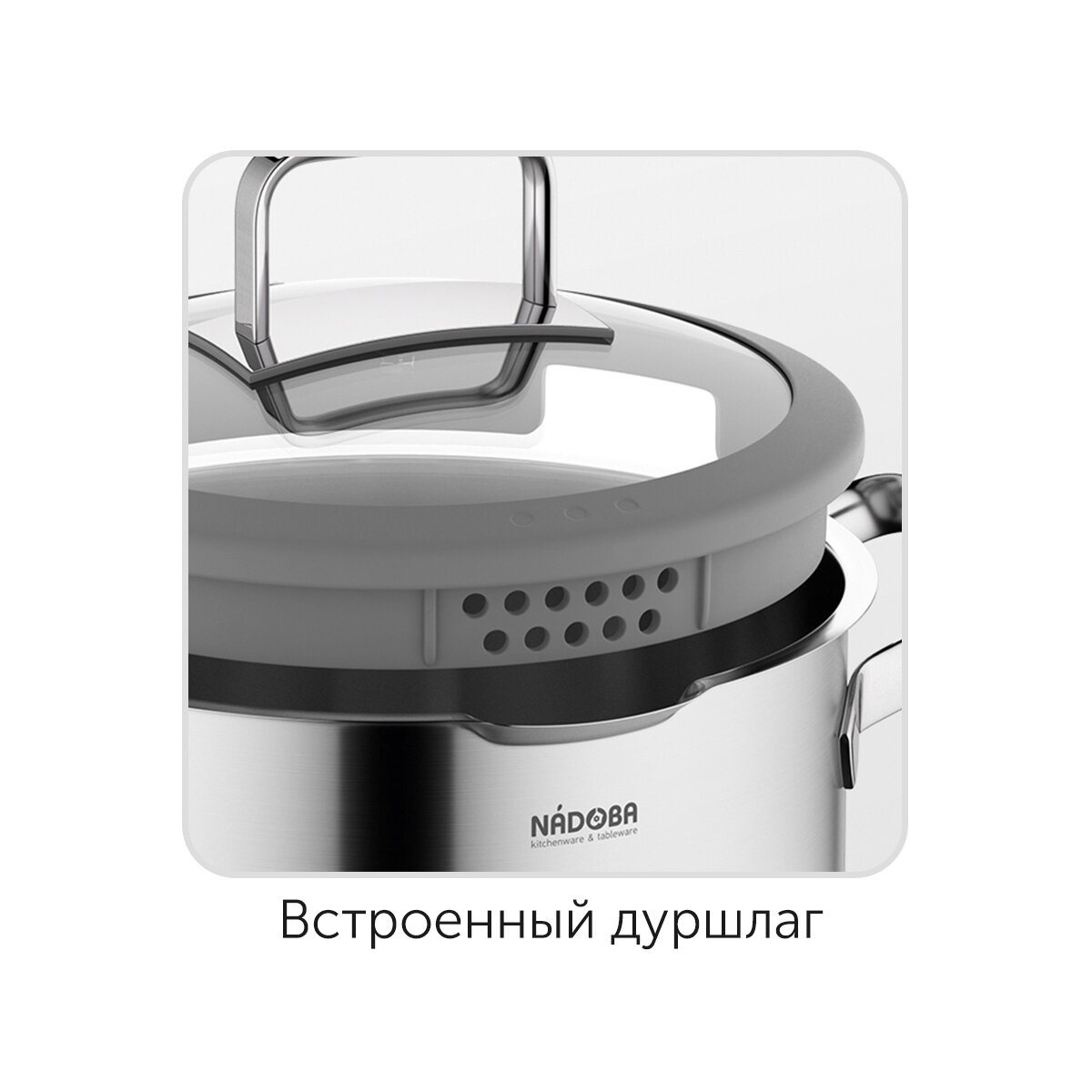 | Особенности | Интегрированный дуршлаг в крышке, маркировка литража, трехслойное капсульное дно, термостойкое стекло. |
