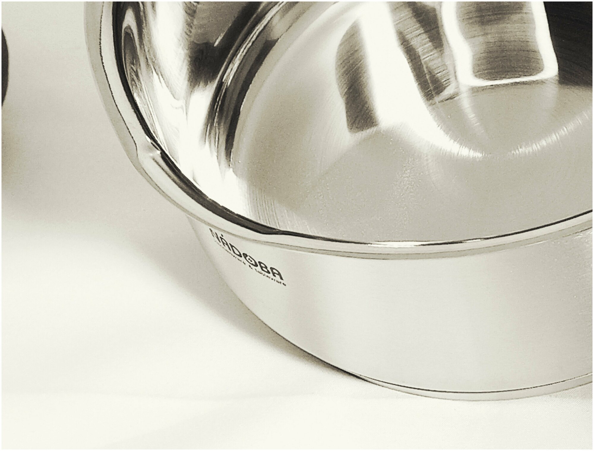Ковш изготовлен из высококачественной нержавеющей стали 18/10. Прочное трёхслойное капсульное дно способствует равномерному распределению тепла. Встроенный дуршлаг на крышке с 3 типами отверстий и носик на корпусе посуды предназначены для удобного слива жидкости. Силиконовое кольцо на крышке позволяет придерживать её во время работы. Отсутствие заклёпок обеспечивает лёгкое мытьё. На внутренних стенках посуды нанесена маркировка литража для простого определения необходимого объёма воды и продуктов. Подходит для всех типов плит, включая индукционные.