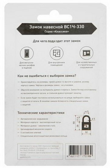 Сервис сравнения цен СкидкаГИД предлагает сравнить цены на товар «Замок навесной Аллюр ВС1Ч-330»