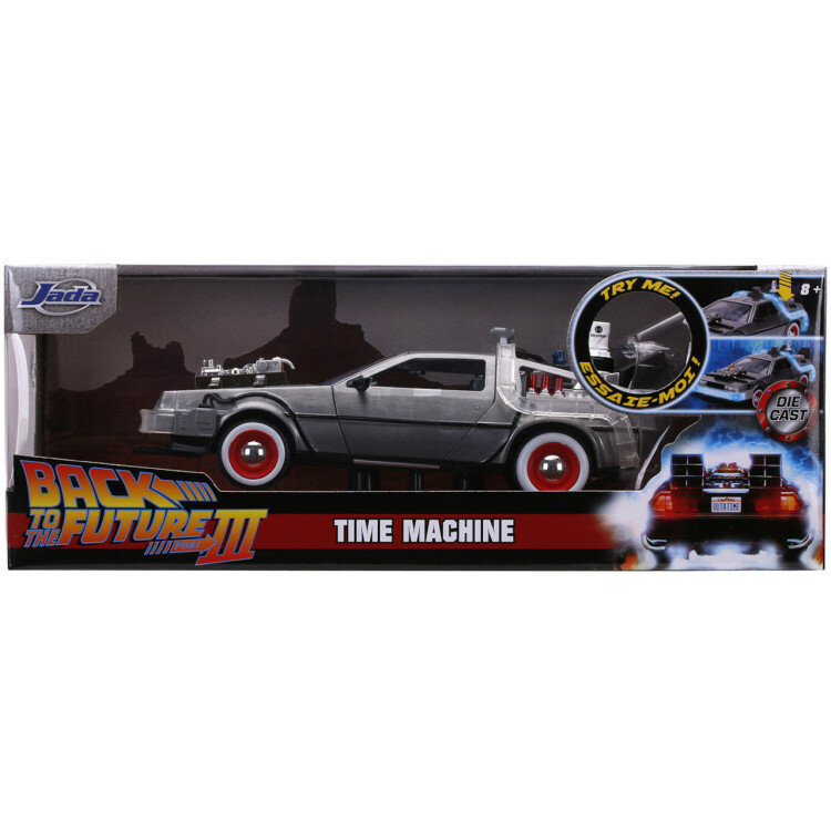 Модель автомобиля ДеЛориан - машины времени из фильма "Назад в будущее 3". Высоко детализированная модель автомобиля DeLorean, из которого доктор Эмметт Браун создал настоящую машину времени. У автомобиля открываются двери, и он без труда передвигается по любой поверхности. Корпус машины сделан из металлического литья с пластиковыми элементами. Модель подробно детализирована и выполнена в масштабе 1:24. Размер машинки 21 х 9 х 8 см (длина х ширина х высота).