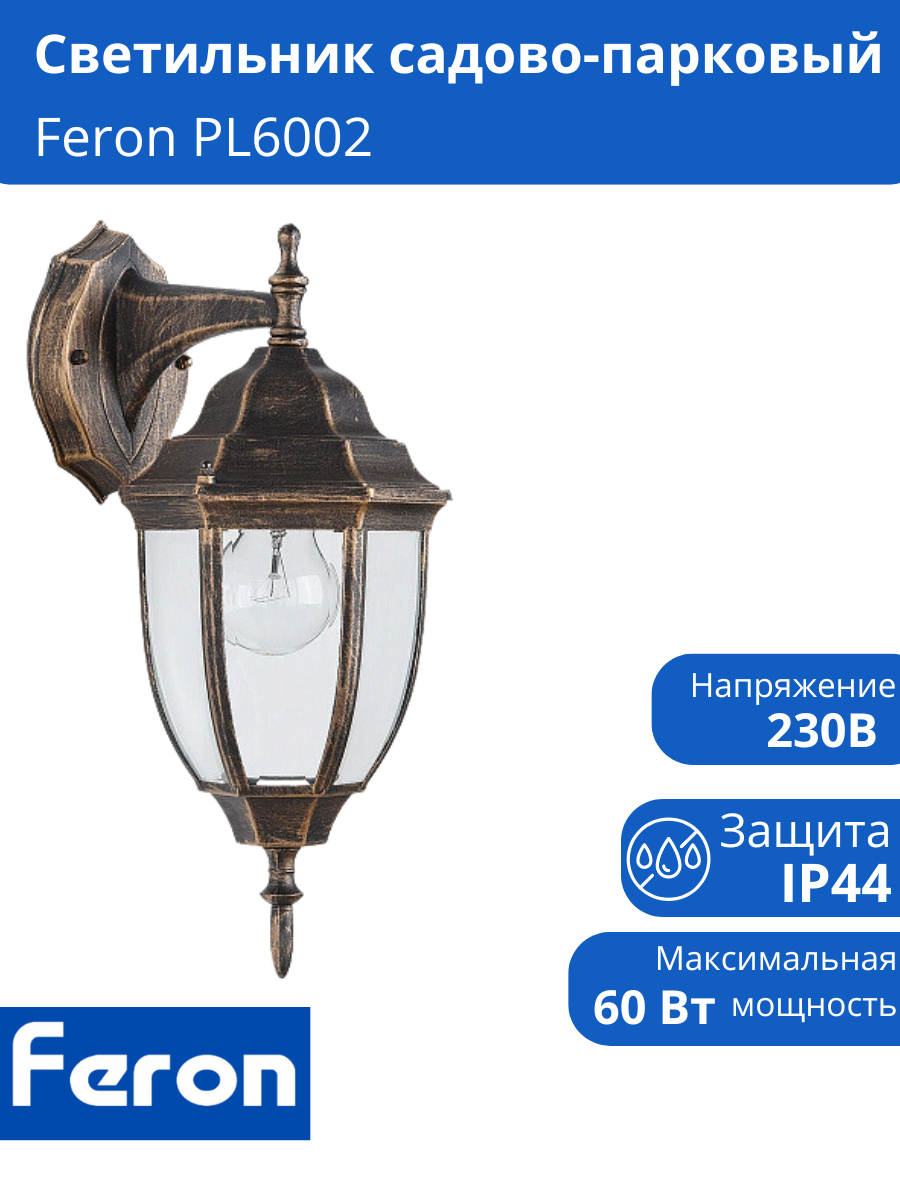 На сегодняшний день товар «Садово-парковый светильник FERON 60W 230V E27 PL6002 11894 (черное золото)» можно купить с кешбеком в 3 магазинах: Santehnika-room, donplafon, Яндекс.Маркет