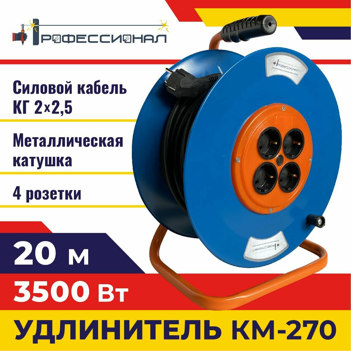 Профессионал Удлинители КМ-270 мет.катушка КГ 2х2,5 20м 1000182