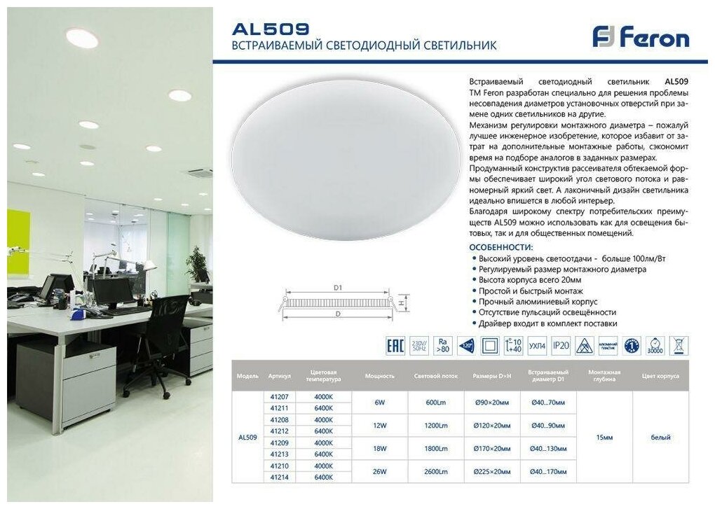Благодаря широкому спектру потребительских преимуществ AL509 можно использовать как для освещения бытовых, так и для общественных помещений.