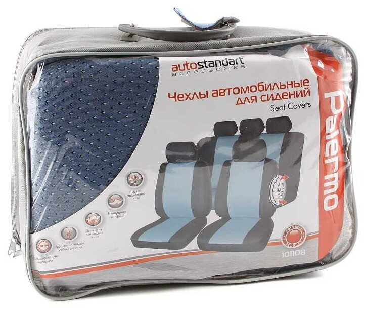 Чехлы салона AUTOSTANDART палермо 9 предметов синий/темно синий 101108 PALERMO (черно-серый) (размер: универсальный)