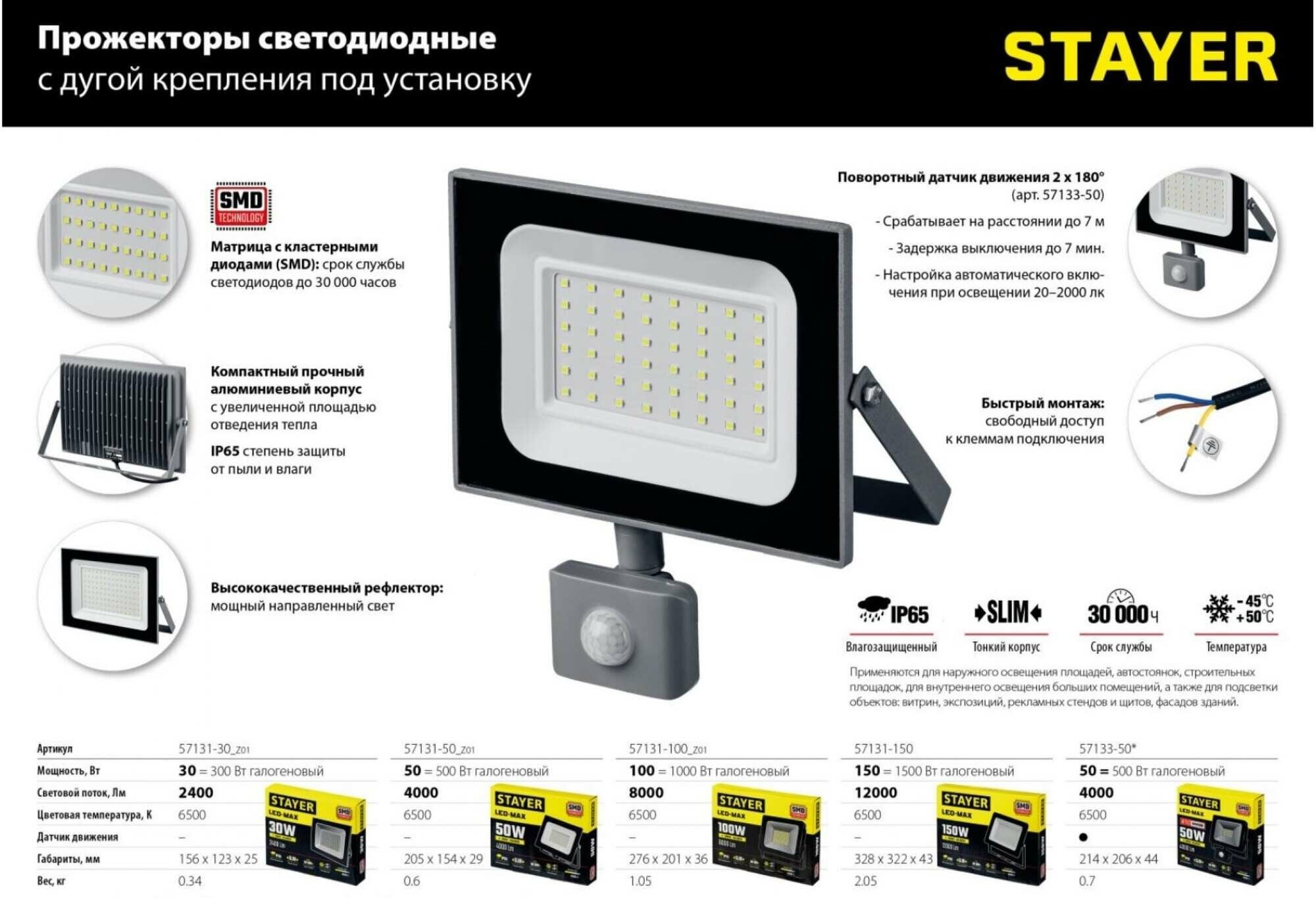 Прожектор светодиодный STAYER Led-Max (черно-серый)