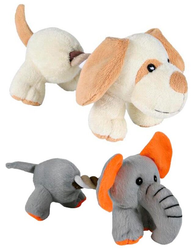 Плюшевая игрушка для собак. Использование веревки делает каждую игрушку удобной для игры в перетягивание. Оснащена также пищалкой для привлечения питомца в игру. Вы можете играть дома или на открытом воздухе. В ассортименте 2 игрушки.Материал - прочный мягкий плюш (полиэстер) и веревка. Игрушка выполнена качественно, а все части хорошо закреплены. Игрушка безопасная, поскольку не имеет мелких приклеенных деталей, которые питомец может отгрызть и проглотить.