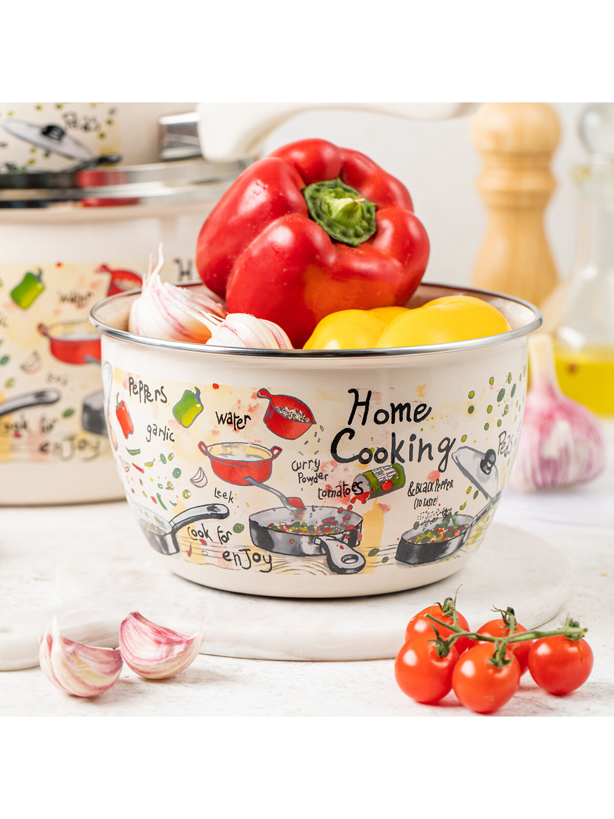 Миска серии "Гурман" из стали с 3-х слойным эмалированным покрытием. Эмалевое покрытие, являясь стекольной массой, не вступает во взаимодействие с продуктами питания, не искажает их вкус, надежно защищает пищу от контакта с металлом и не вызывает аллергию.