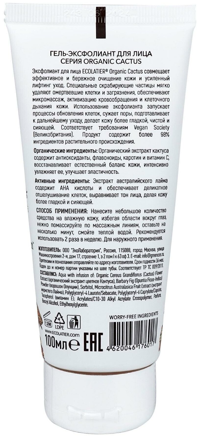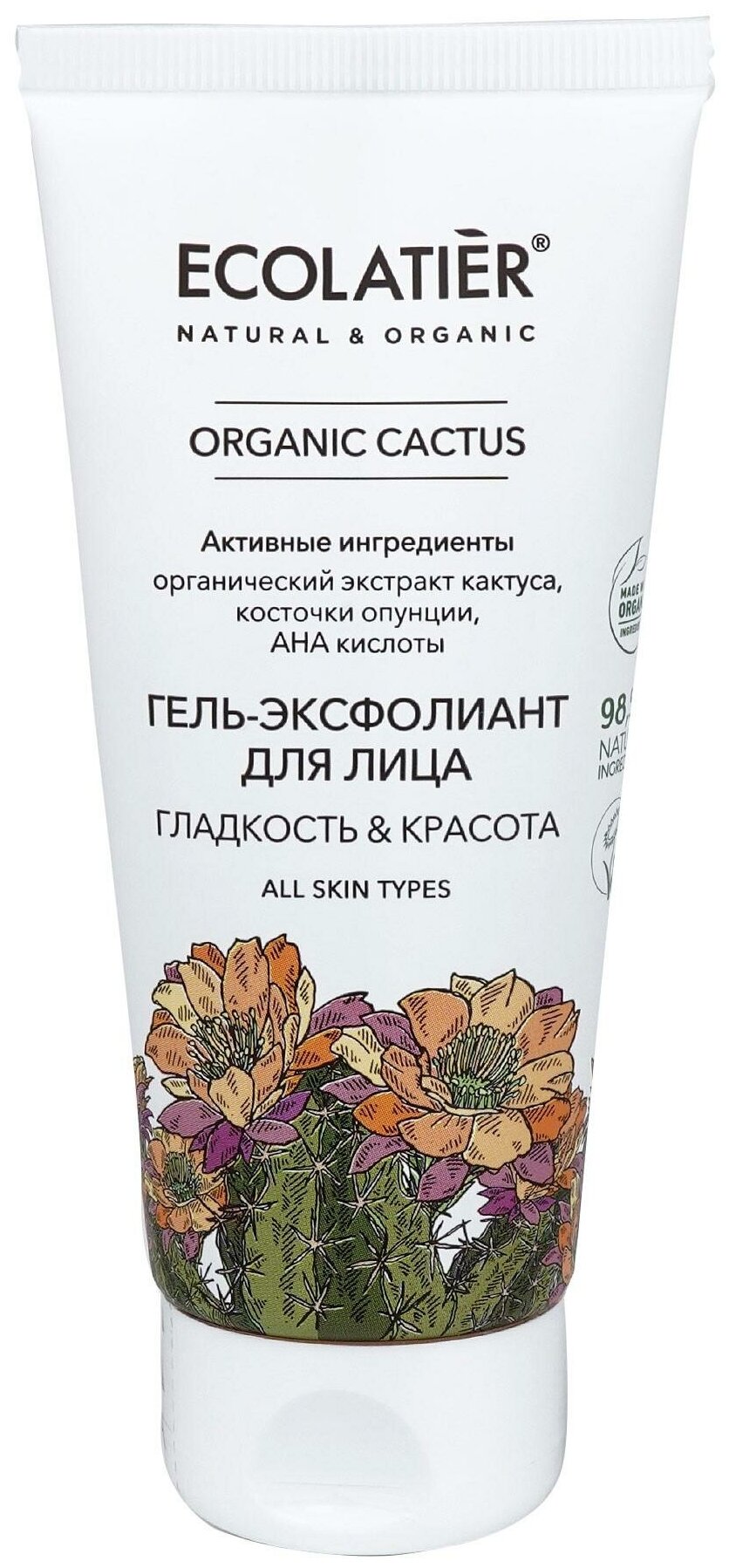Эксфолиант для лица ECOLATIER® Organic Cactus совмещает эффективное и бережное очищение кожи и усиленный лифтинг уход.