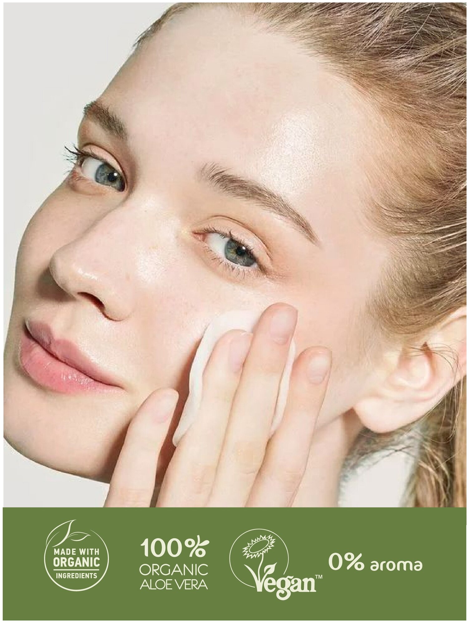 Экстракт органического алоэ вера содержит витамины, аминокислоты, минералы, полисахариды, фитонциды, обладает высокой био доступностью и является природным стимулятором регенерации клеток и