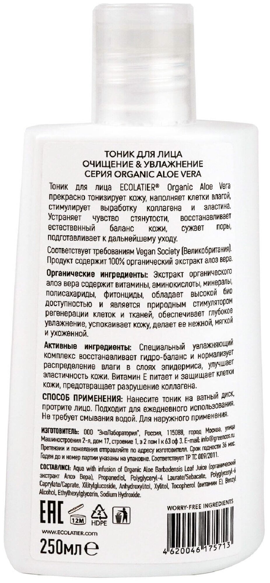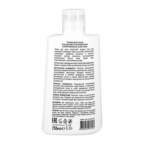 Тоник для лица ECOLATIER® Organic Aloe Vera прекрасно тонизирует кожу, наполняет клетки влагой,