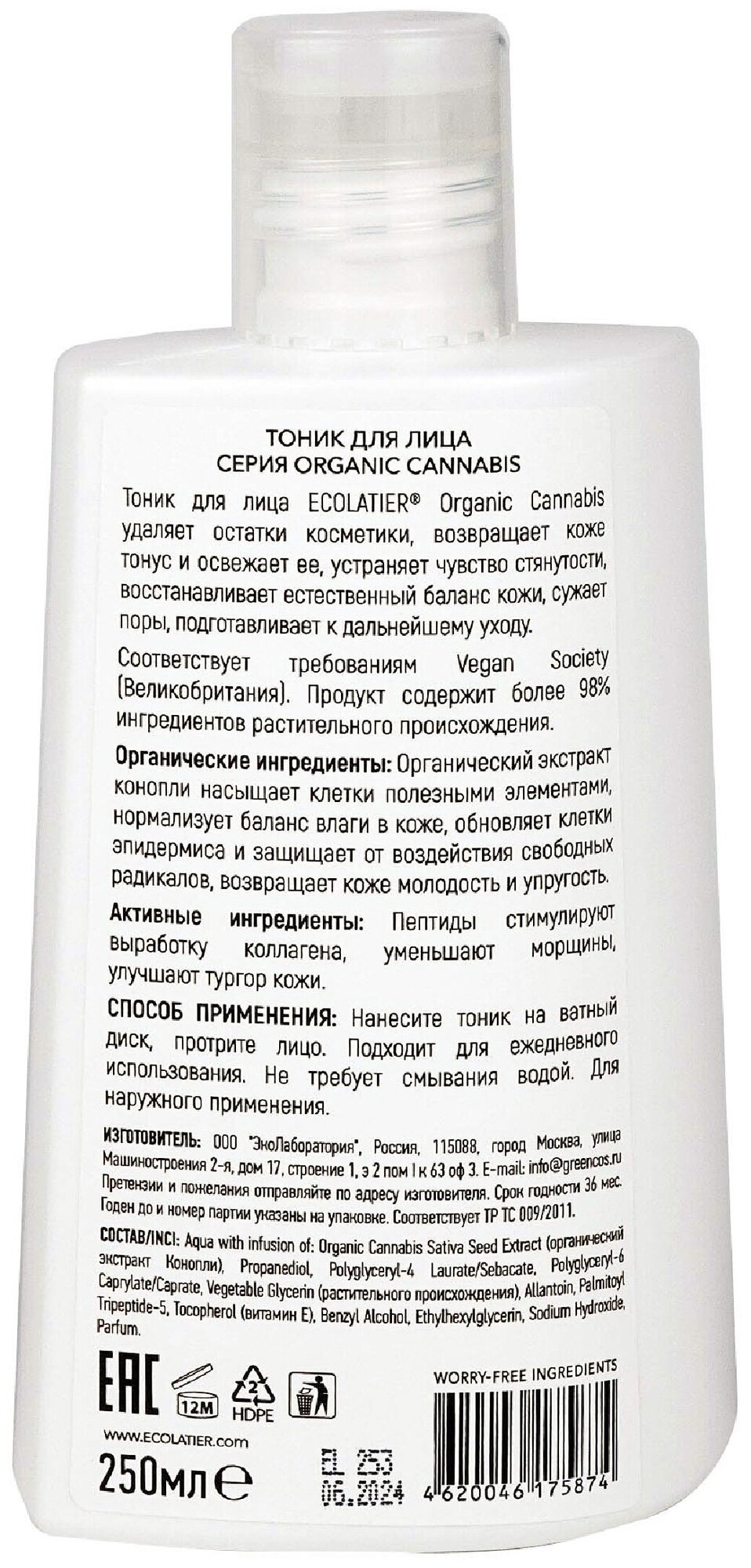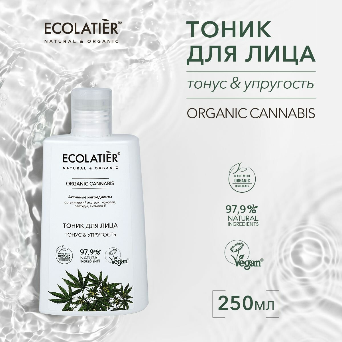 Тоник для лица ECOLATIER Organic Cannabis 250мл EСОLATIER (П099-37069)
