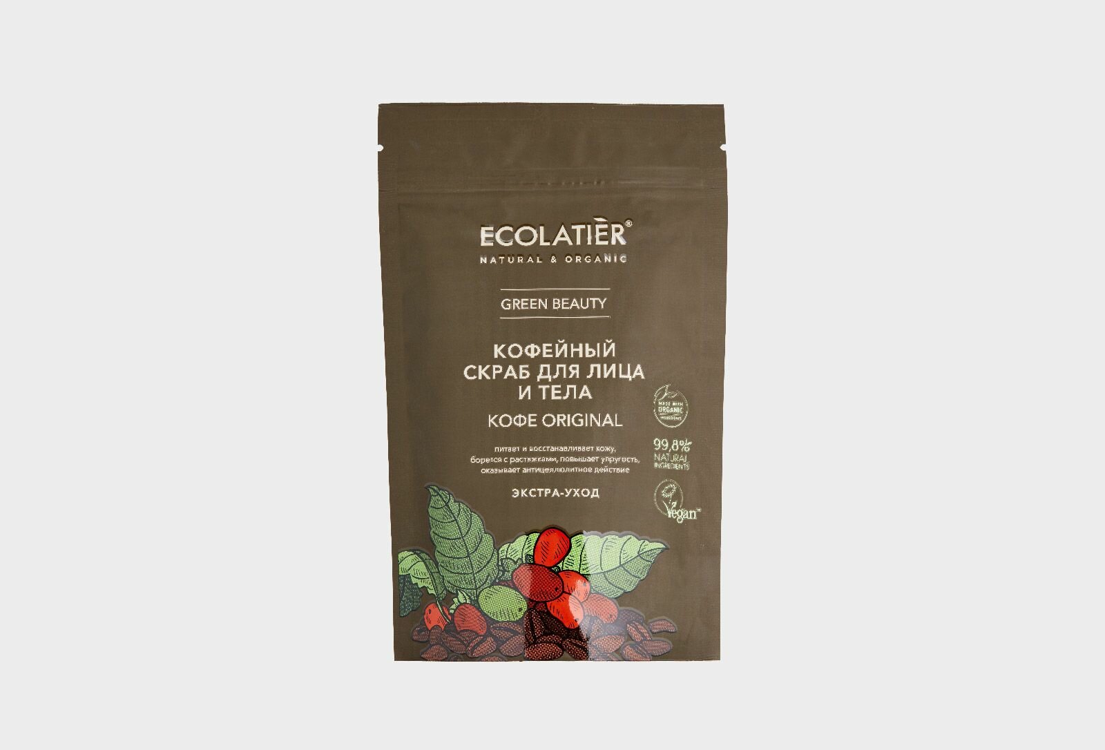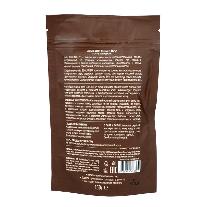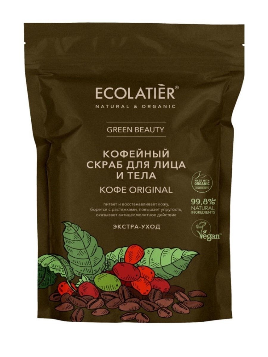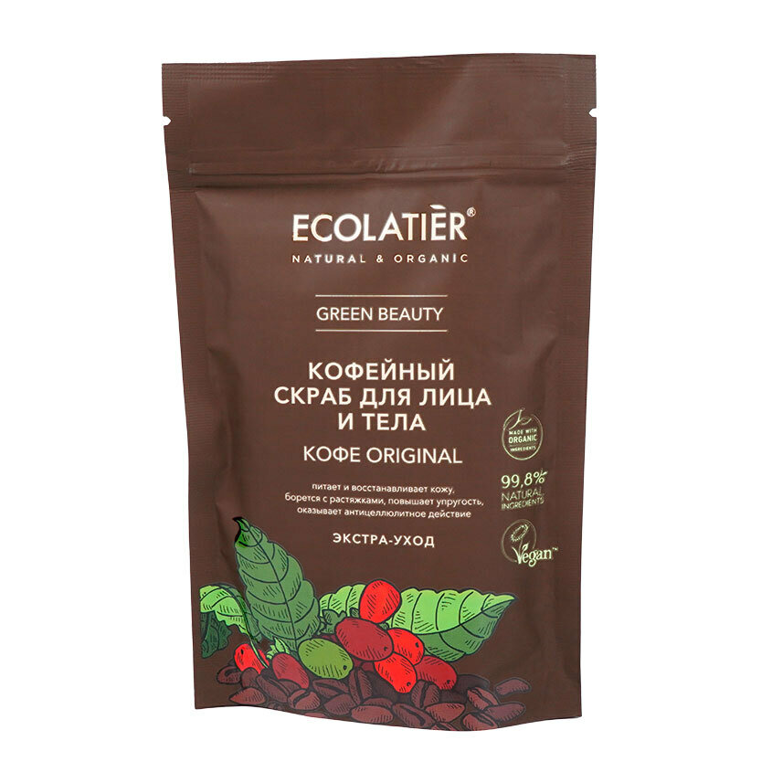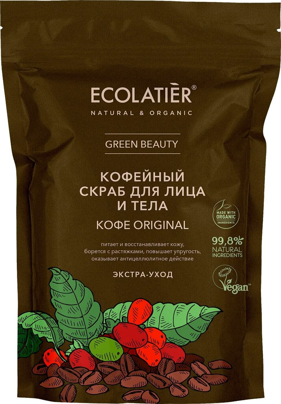 Скраб для лица и тела ECOLATIER Кофе Original обеспечивает экстра-уход, эффективно очищает и улучшает состояние кожи.
