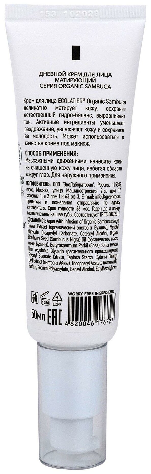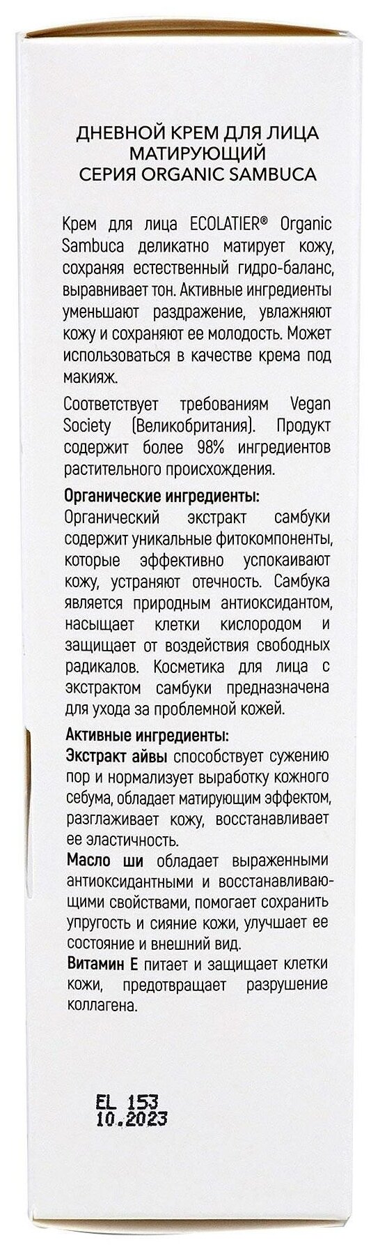 Крем для лица ECOLATIER Organic Sambuca дневной матирующий 50мл EСОLATIER (П099-37073)