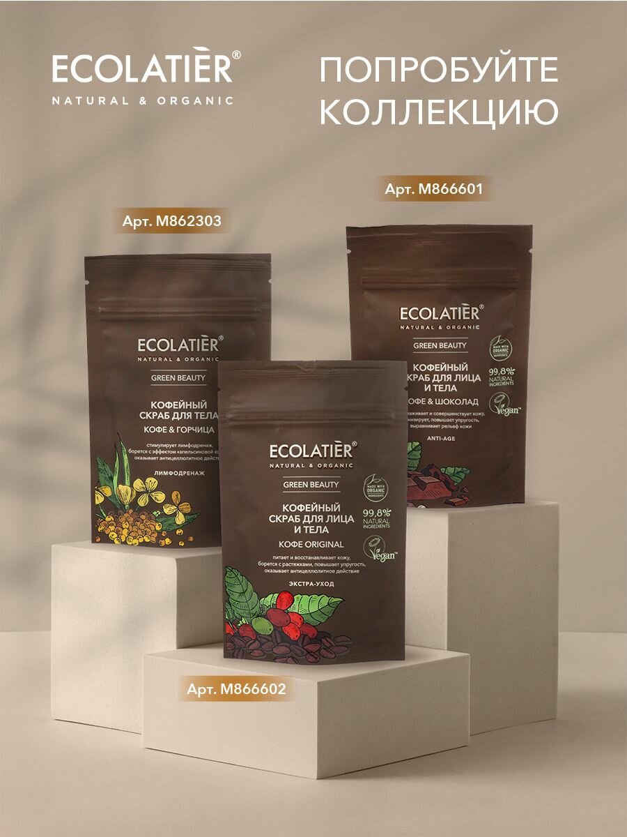 На сегодняшний день товар «Скраб для лица и тела ECOLATIER "Кофе и Шоколад" 150гр EСОLATIER (П099-36726)» можно купить с кешбеком в 1 магазине: Яндекс.Маркет