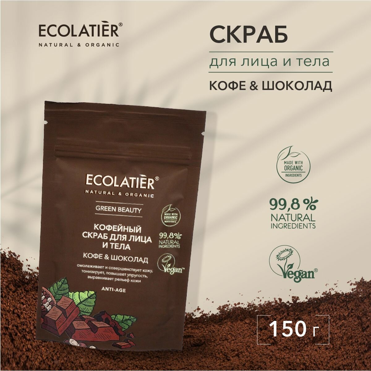 Скраб для лица и тела ECOLATIER "Кофе и Шоколад" 150гр EСОLATIER (П099-36726)