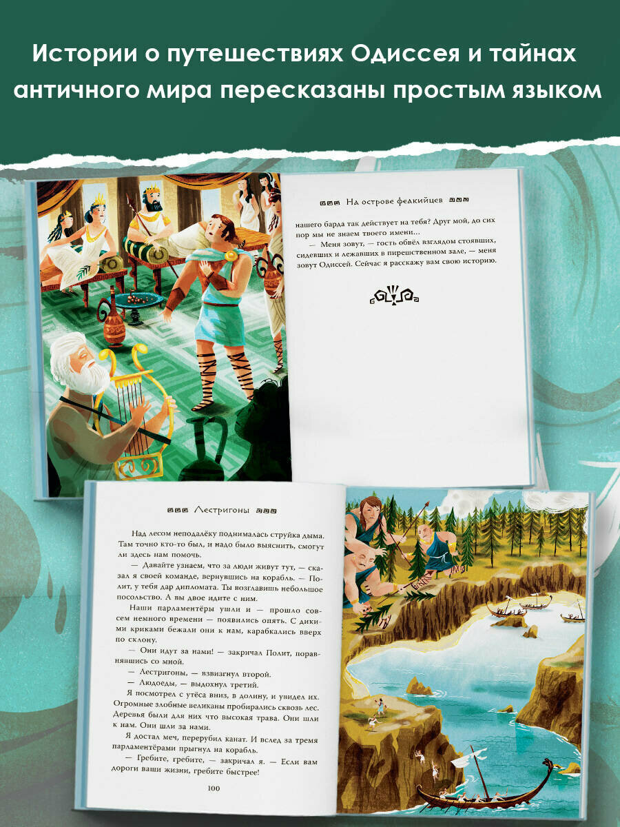 История приключений отважного Одиссея, рассказанная Гомером из Древней Греции, известна и любима во всём мире на протяжении столетий. Разъярённые боги и милостивые богини, ужасающие монстры и сладкоголосые сирены готовы открыть читателям тайны античного мира. Классический сюжет пересказан в простой и понятной детям форме. Книга полна ярких современных иллюстраций, которые превращают чтение в настоящее путешествие во времени.