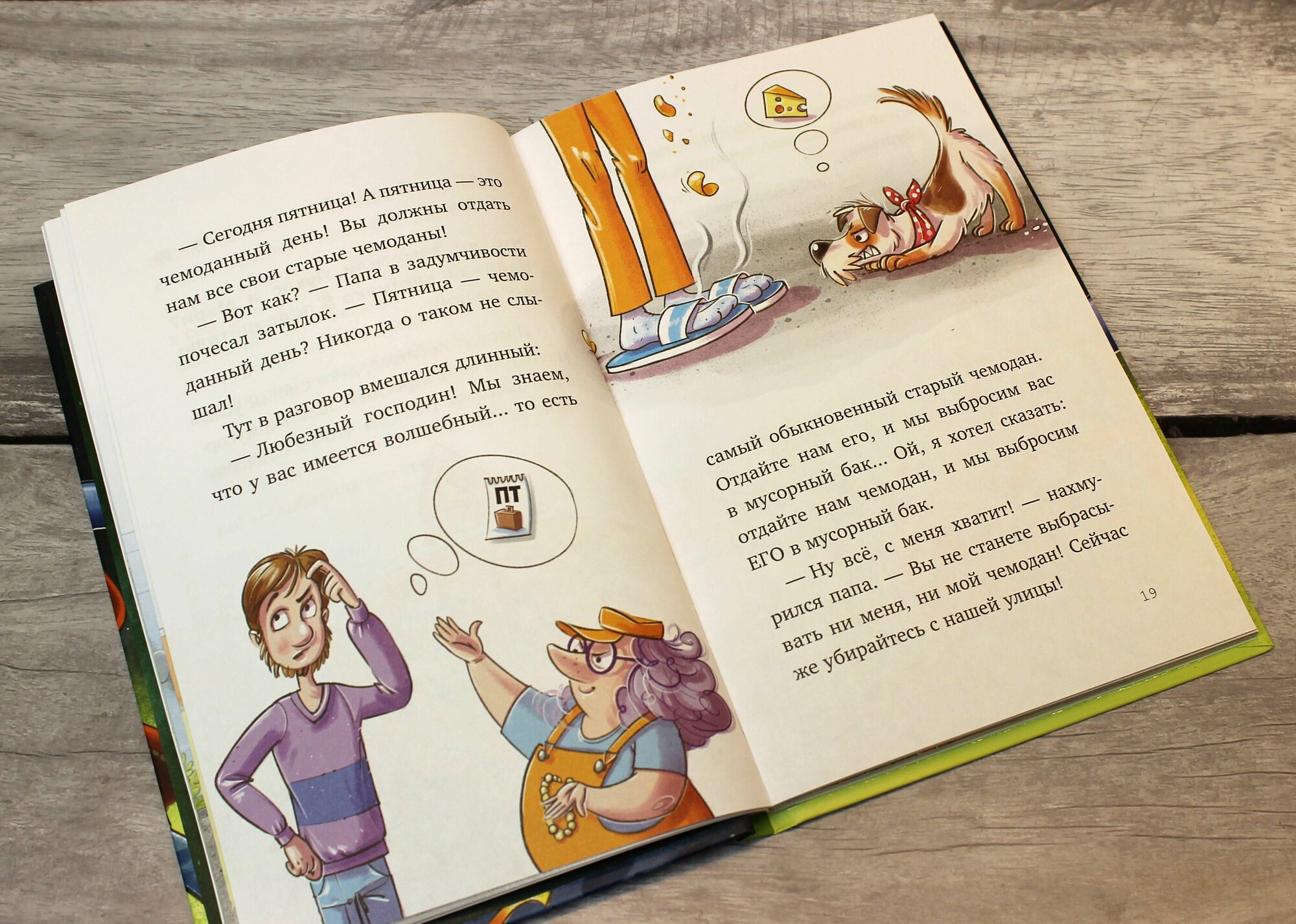 Несмотря на большое количество страниц, читается очень быстро. Книга с юмором. Сыну понравилось, что в книге есть задания на логику, небольшой лабиринт, "найди и покажи", увидеть на картинке что является "подозрительным". В конце книги есть ответы.