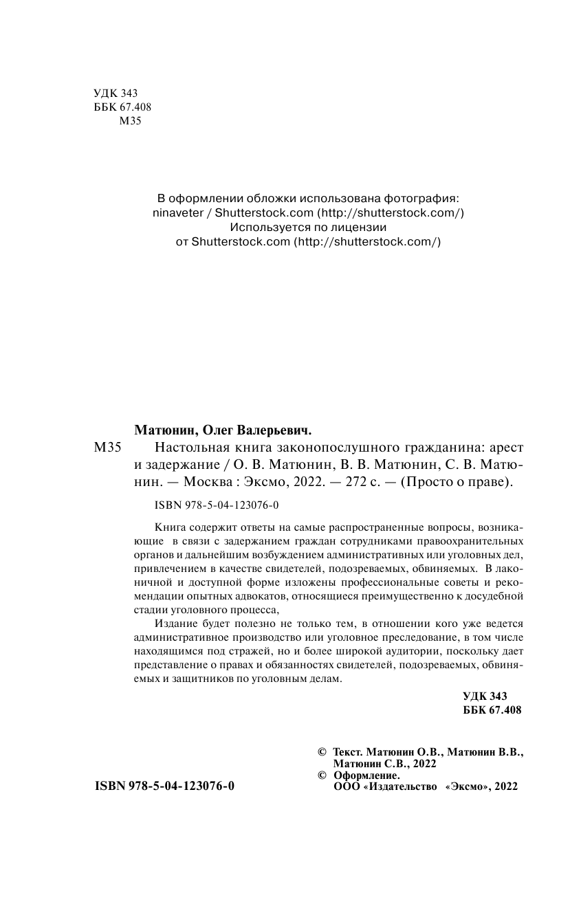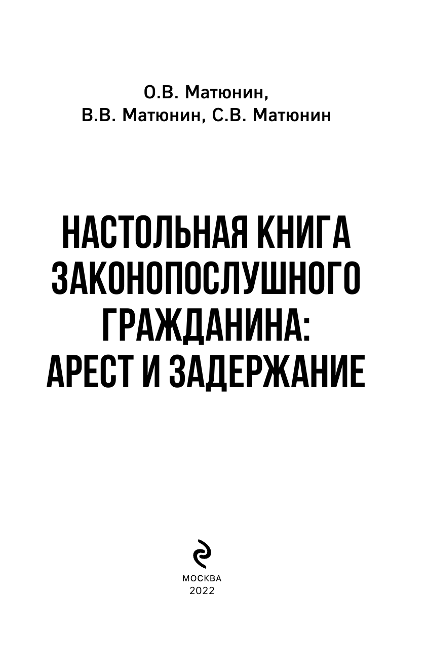 Настольная книга законопослушного гражданина: арест и задержание (Матюнин Олег Валерьевич; Матюнин Виталий Валерьевич; Матюнин Сергей Валерьевич); ООО "Издательство "Эксмо", 2022