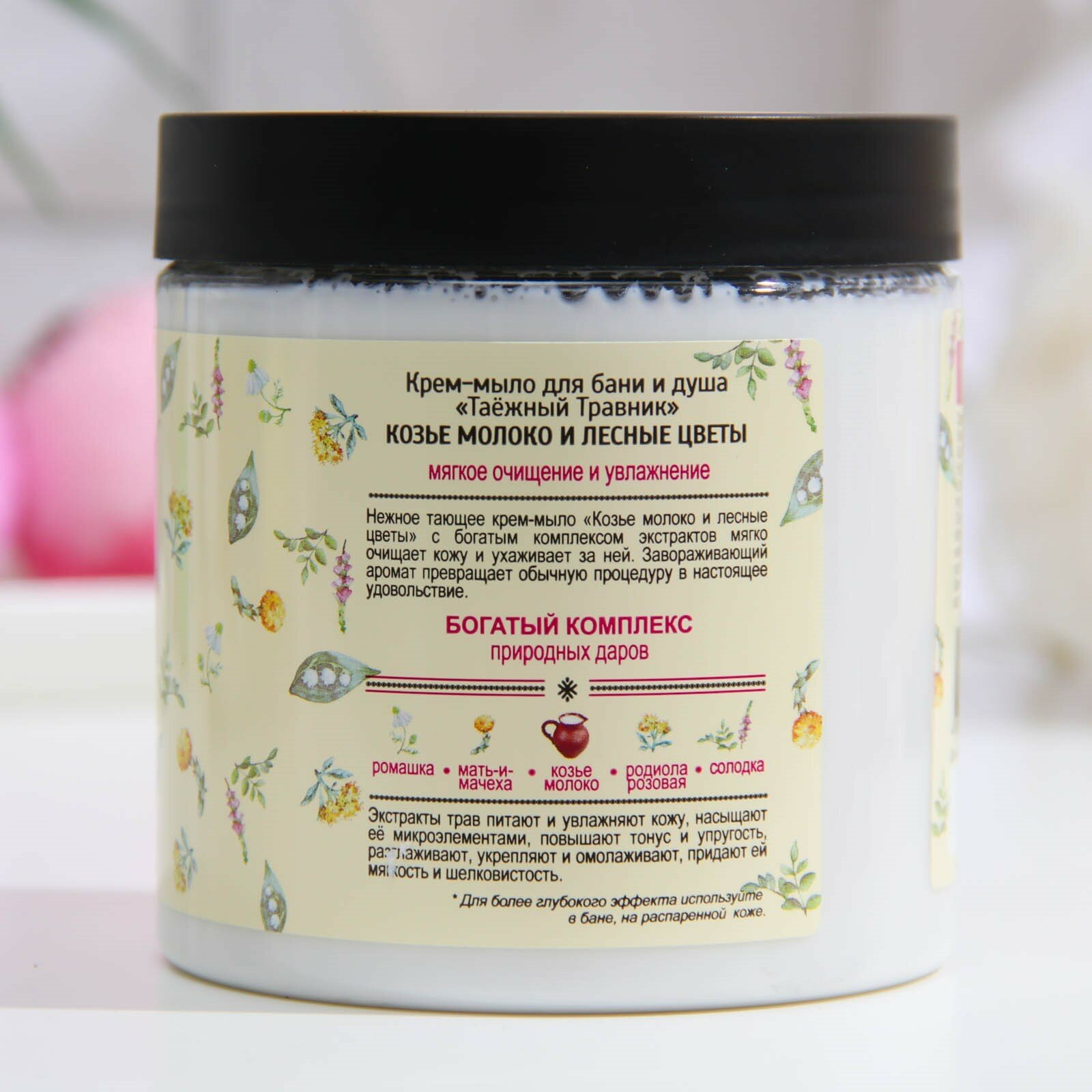 Крем-мыло Таежный травник для бани и душа Козье молоко и Лесные цветы 500мл