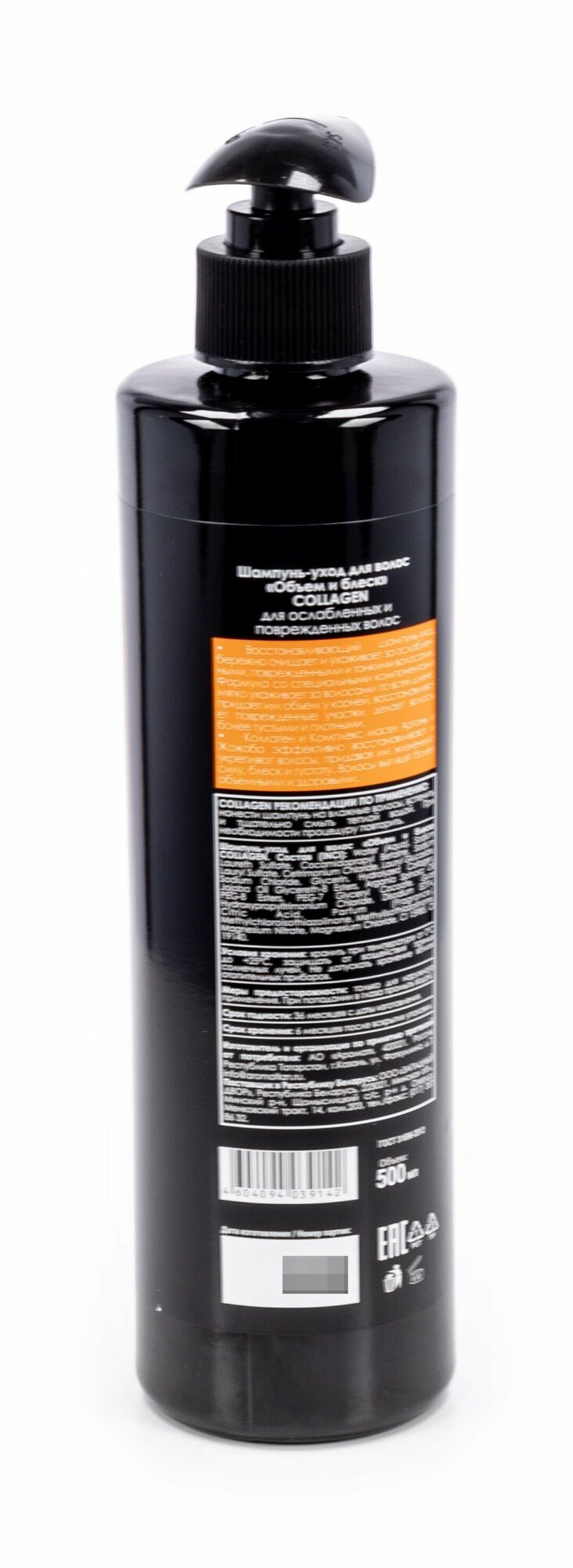 | Состав | Water (Aqua); Sodium Laureth Sulfate; Cocamidopropyl Betaine; Sodium Lauryl Sulfate; Cetrimonium Chloride; Lauryl Glucoside; Sodium Сhloride; Glycerin; Hydrolyzed Collagen; Jojoba Oil Glycereth-8 Esters; Argania Spinosa Oil PEG-8 Esters; PEG-7 Glyceryl Cocoate; Guar Hydroxypropyltrimonium Chloride; Disodium EDTA; Citric Acid; Parfum (Fragrance); Methylchloroisothiazolinone; Methylisothiazolinone; Magnesium Nitrate; Magnesium Chloride; CI 15985; CI 19140 |