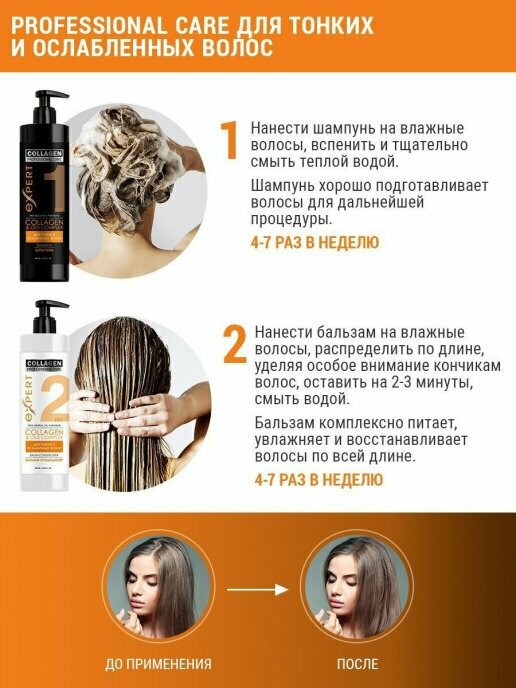 Шампунь для волос Professional care Expert Collagen and Oils complex 500мл