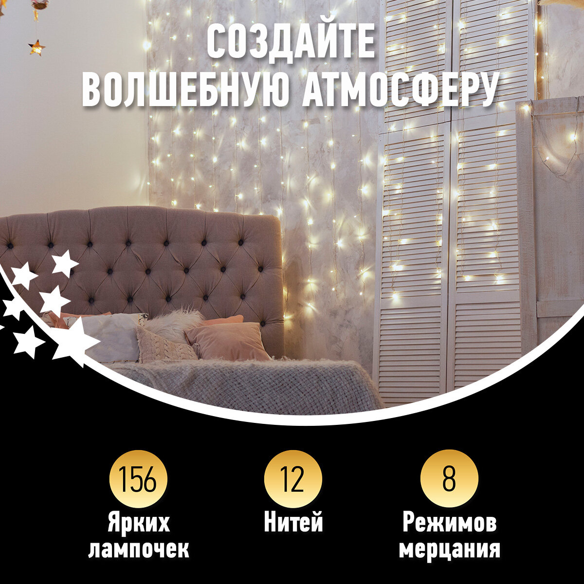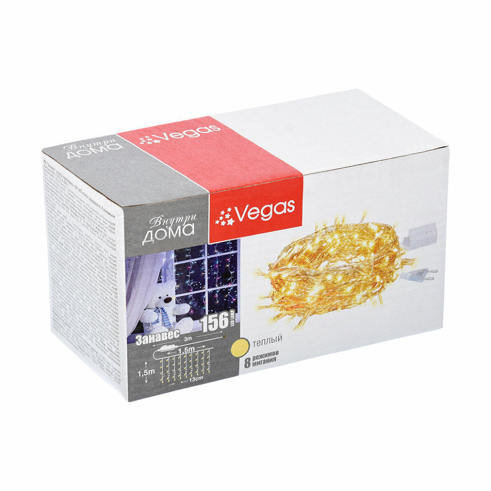 Электрогирлянда новогодняя Vegas Занавес Холодное свечение светодиодная 156 ламп 1.5*1.5м Hoff