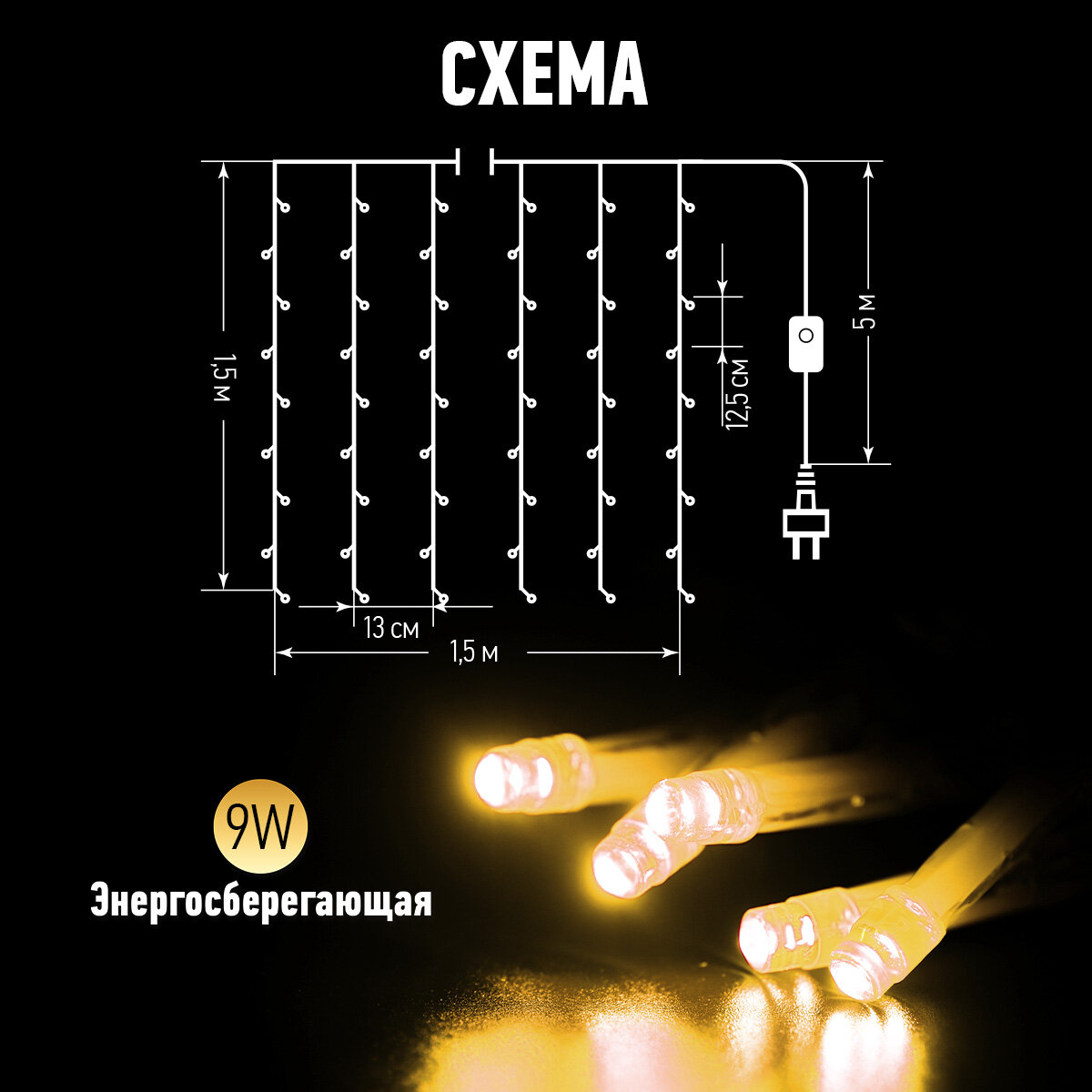 Для создания декоративной и праздничной иллюминации. Электрогирлянды "Занавес" предназначены для декорирования жилых и торговых помещений (окон, колонн и других архитектурных элементов).