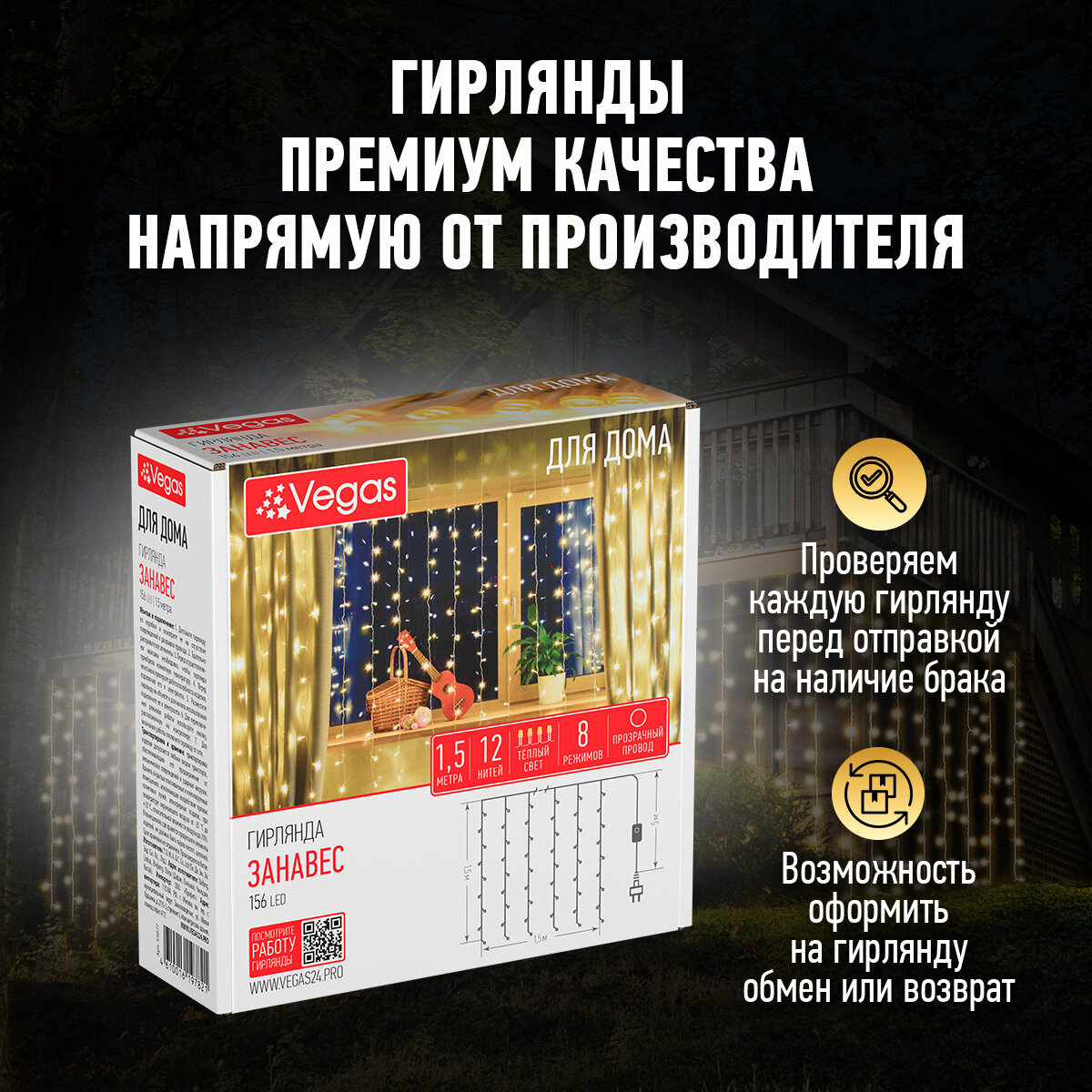 На сегодняшний день товар «Электрогирлянда новогодняя Vegas Занавес Холодное свечение светодиодная 156 ламп 1.5*1.5м Hoff» можно купить с кешбеком в 2 магазинах: Vprok (Перекресток), Яндекс.Маркет