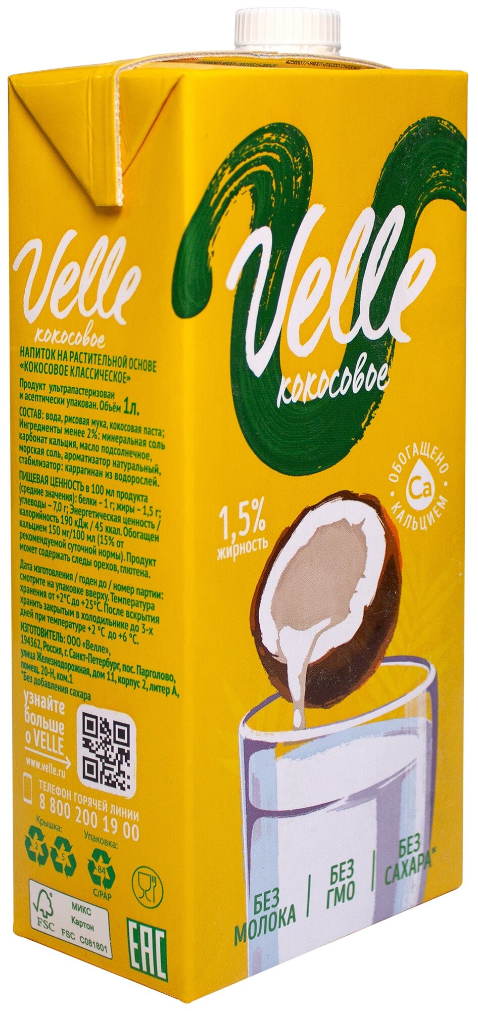 Напиток растительный Velle Кокосовый 1.5% 1л