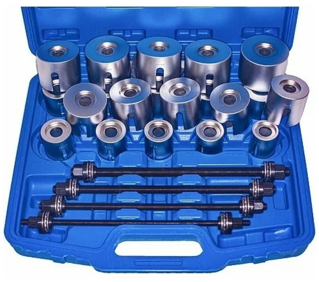 Набор применяется для монтажа и демонтажа подшипников, сайлентблоков, втулок.Комплектация:Силовые шпильпики 4шт:M10x1.5, M12x1.5, M14x1.5, M16x1.5.Гильзы 20шт (внеш.) x (внутр.): 44x34, 46x36, 48x38, 50x40, 52x42, 54x44, 56x46, 58x48, 60x50, 62x52, 64x54, 66x56, 68x58, 70x60, 72x62, 74x64, 76x66, 78X68, 80x70, 82x72 мм.