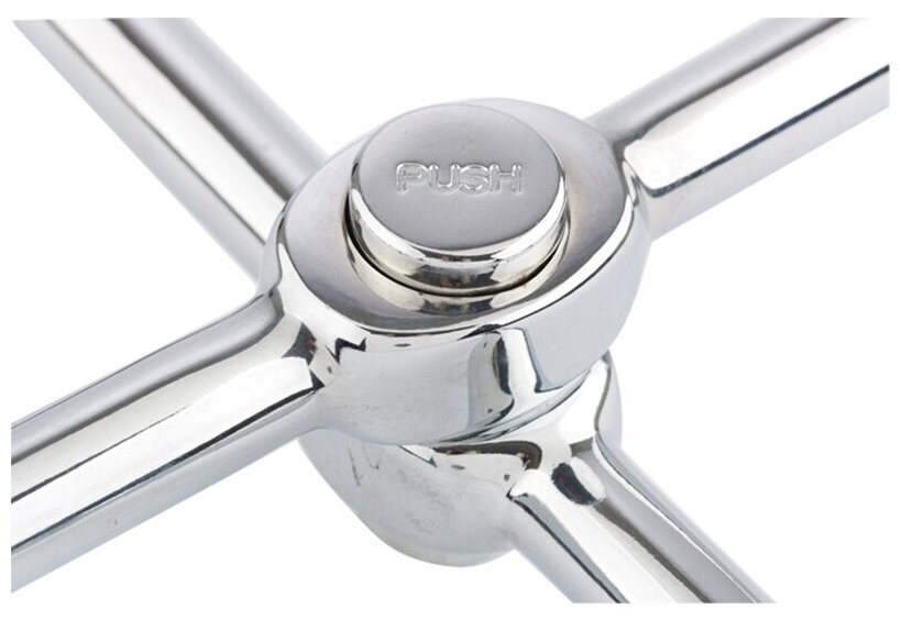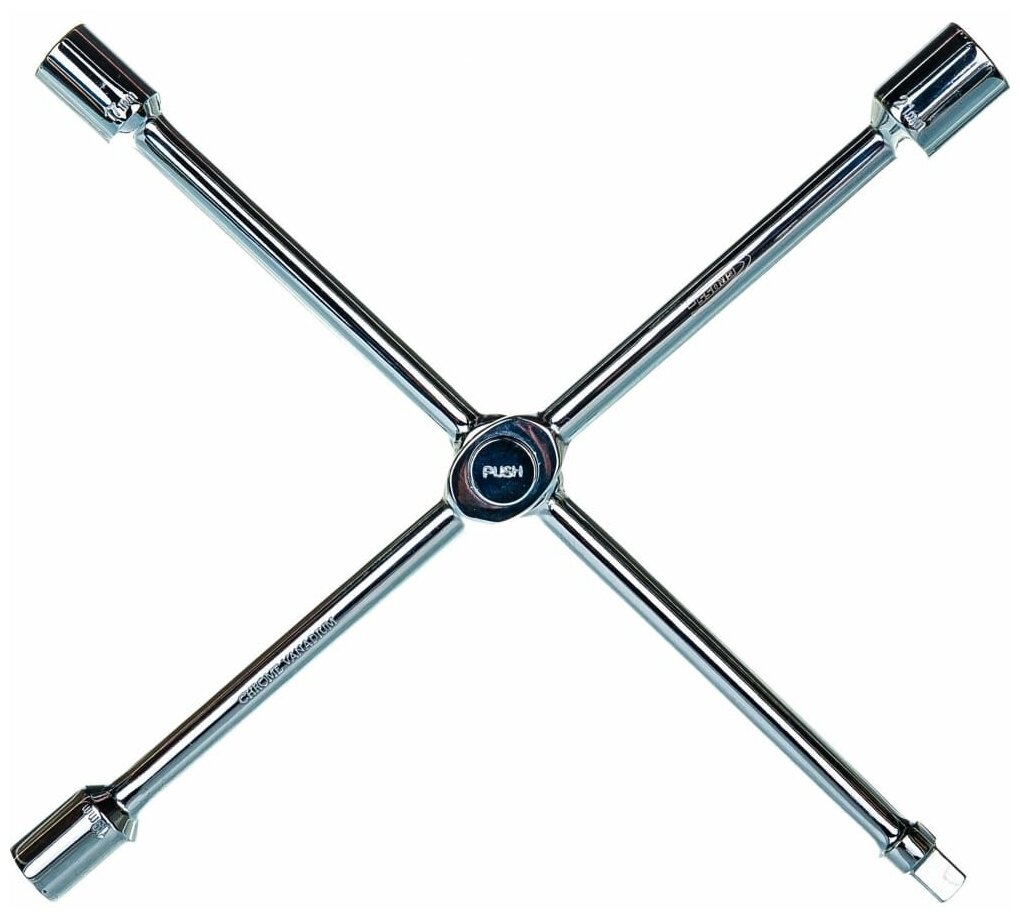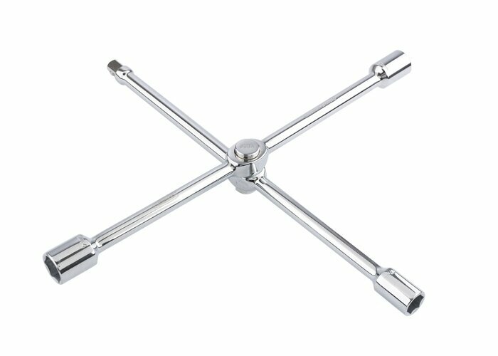 Складной баллонный ключ Gross 14250, хромированный, 406 мм, под крепежи 17, 19, 21 мм и с квадратом 1/2", предназначен для профессионального обслуживания автомобилей. Используется для откручивания и закручивания колесных болтов и гаек. Применяется в автоцентрах и пунктах шиномонтажа, также подойдет для самостоятельного ремонта автомобиля в гараже или в пути. Ключ оснащен складным механизмом и в сложенном положении очень компактен, поэтому его удобно хранить и перевозить.ПреимуществаКлюч снабжен присоединительным квадратом 1/2", что позволяет работать с торцевыми головками любых размеров, имеющими соответствующее посадочное отверстие.Рабочие части термообработаны до твердости 41 HRC, что полностью соответствует требованиям госта.Инструмент прочен и устойчив к коррозии, т. к. изготовлен из высокотвердой хромованадиевой стали и имеет защитное покрытие.