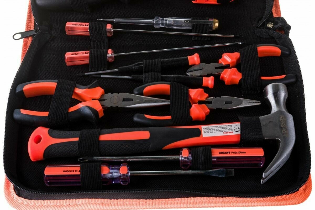 | Прочие особенности и свойства | Набор инструментов 23шт Gigant GT-23 представляет собой основной перечень инструмента, необходимого в быту, и его разновидности по типоразмерам. Набор позволяет подобрать отвертку или плоскогубцы под конкретную задачу. Имея такой набор, в большинстве случаев можно обойтись без каких-либо дополнительных приспособлений., , Комплект поставляется в сумке на молнии, что обеспечивает удобство хранения и транспортировки., Все элементы набора изготовлены из материалов высокого качества, двухкомпонентные рукоятки удобны в обхвате., Пластиковые элементы выполнены из противоударного ABS пластика., Gigant – собственная торговая марка компании ВсеИнструменты.ру, разработанная специально для требовательных мастеров. Продукция представлена профессиональными и бытовыми инструментами, имеет доступную цену и высокое качество. При изготовлении товаров Gigant используется современное оборудование и прочные материалы. Производство осуществляется на современных предприятиях России и Азии. Тестирование товаров осуществляется в два этапа, каждая партия инструментов проходит проверку на соответствие стандартам и заявленным техническим характеристикам. Это является залогом качества и надежности готового продукта. Продукция представлена широкой линейкой инструментов. У нас можно приобрести ручной инструмент, строительный, садовый, сантехнический, климатический, крепежный, автогаражный, а также станки, расходные материалы и многое другое. |
