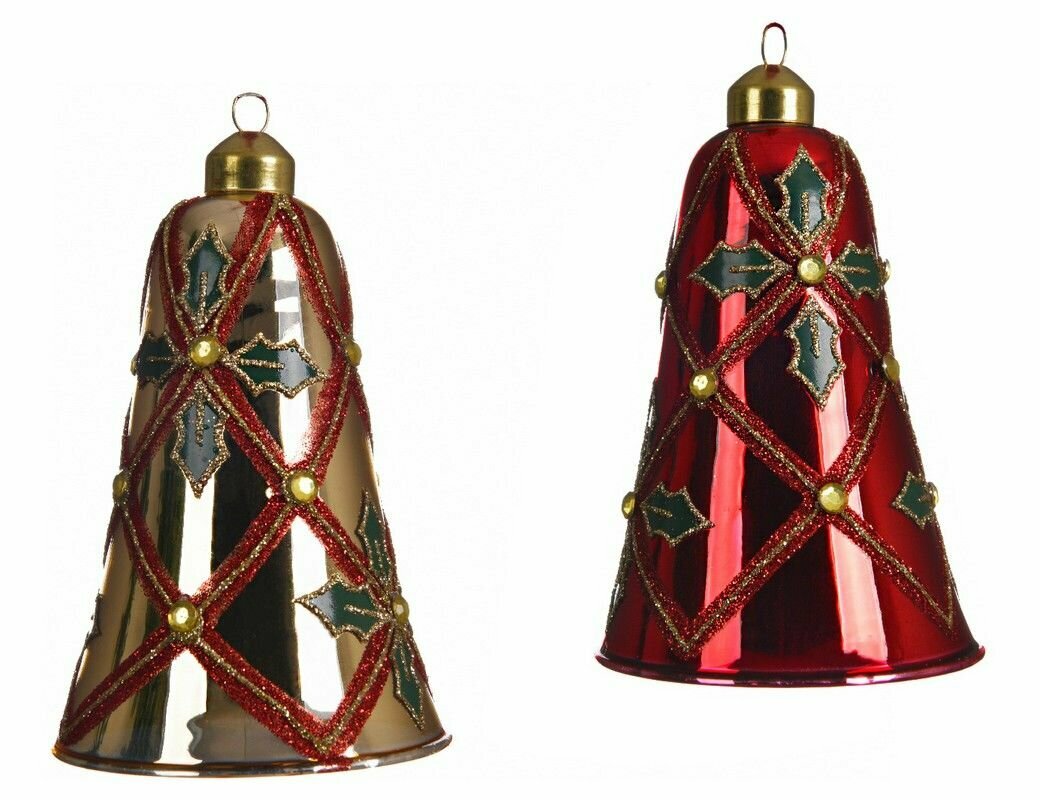 Звенящее обаяние колокольчиков, новогоднее волшебство остролиста, благородство оттенка, орнамента и формы - чудесная пара украшений, мерцающая заманчивыми искорками! Характеристики:Размер - 11х7.5 см.Материал - стекло.Цвет - красный.Упаковка - подарочная коробка из плотного картона.Набор - 2 колокольчика.Цена указана за набор. Производитель KAEMINGK, Голландия.Производство размещено в Китае.