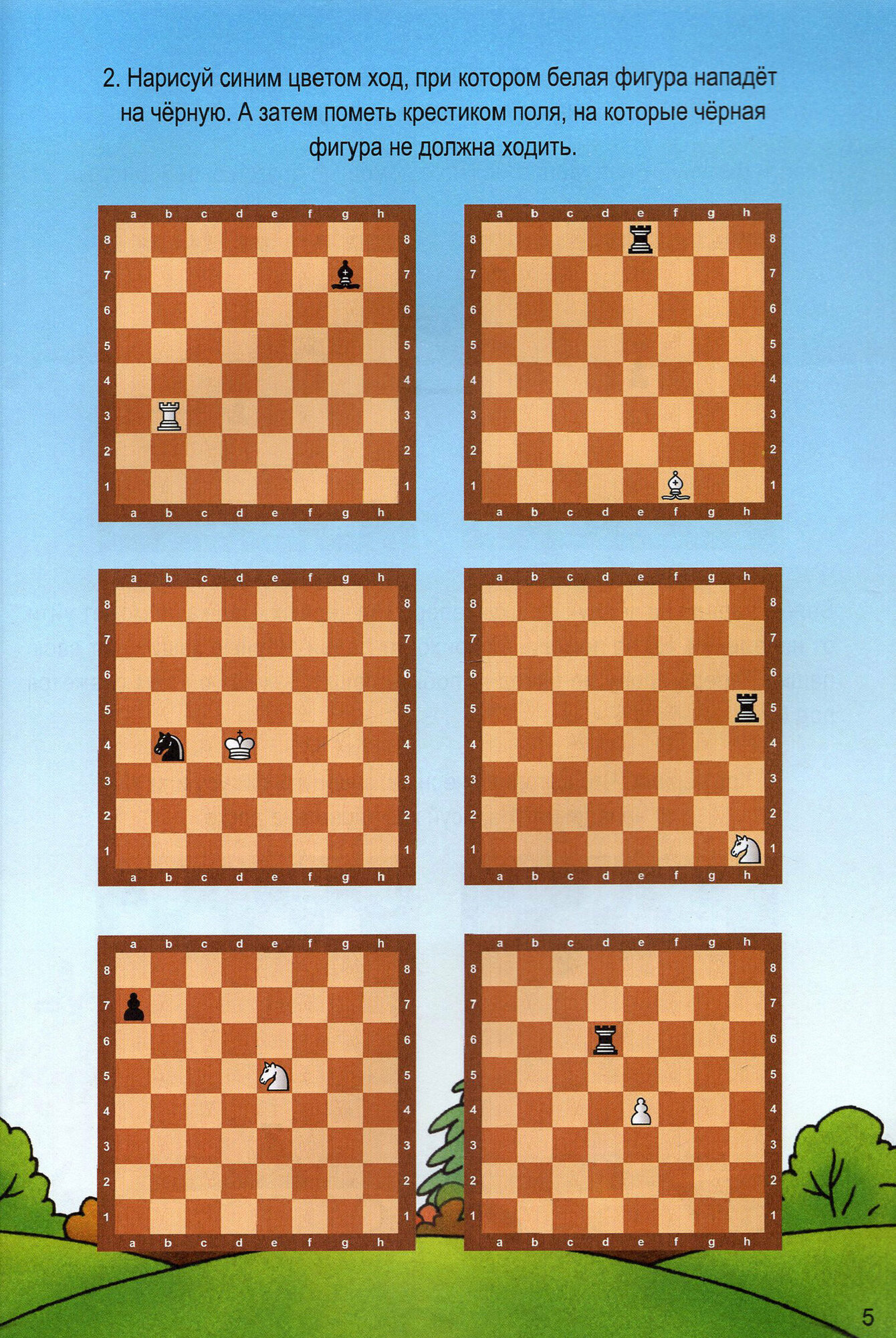 Первая часть нашей книги позволит ребёнку в игровой форме узнать, что такое шахматы, как ходят и бьют фигуры, какие фигуры выгоднее взять и почему.