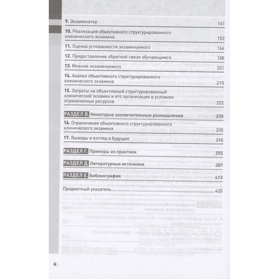 В руководстве ОСКЭ представлен с позиций экзаменатора, студента и пациента. Авторы осветили ключевые вопросы, такие как предварительное планирование, разработка станций, подходы в оценке компетенций, предоставление обратной связи и оценка качества экзамена.