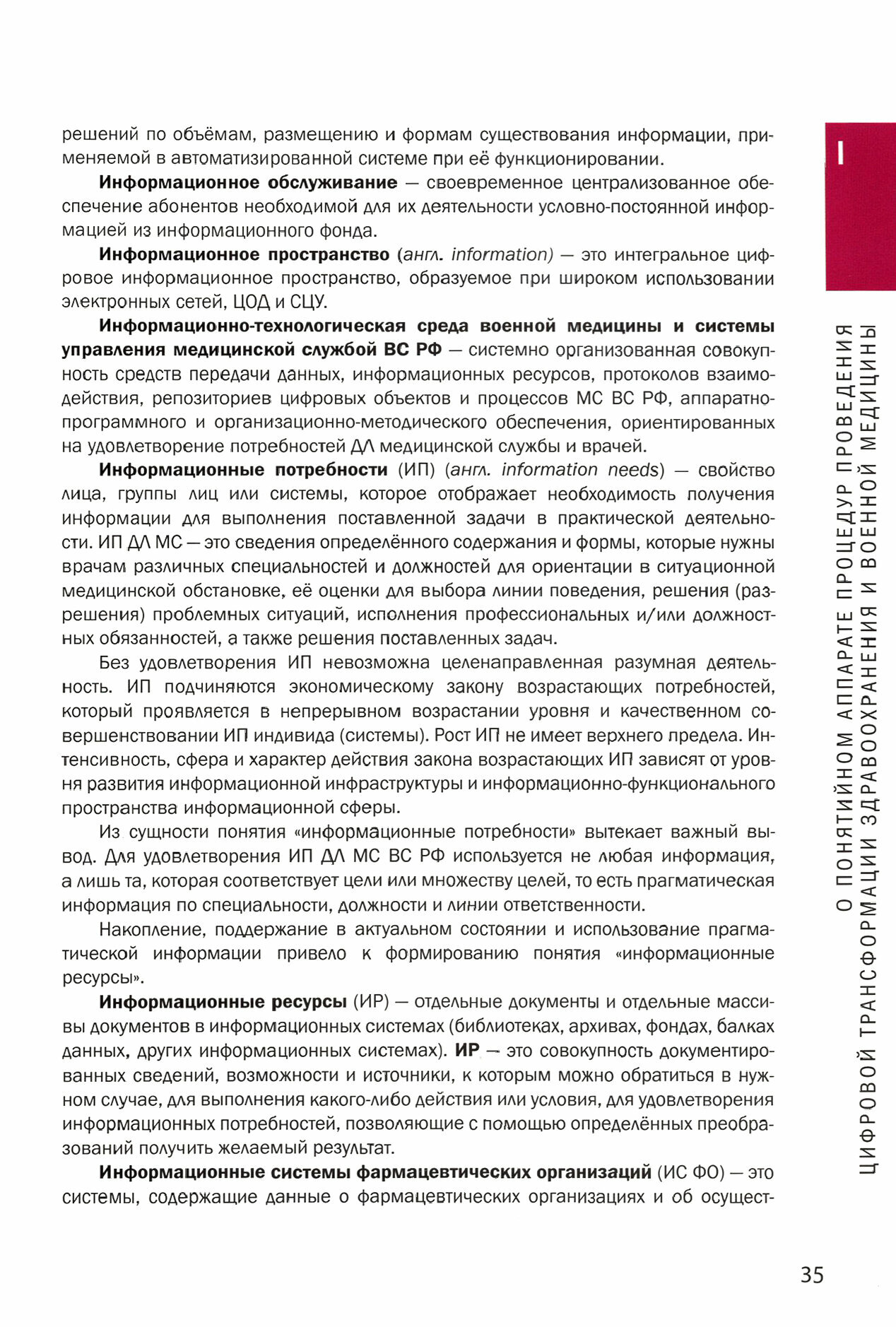 В монографии рассмотрены теоретические и практические основы, а также методологические аспекты "цифровой" медицины и здравоохранения, рассмотрены пути цифровой трансформации военной медицины, применение методов системного подхода и ситуационного анализа для решения практических задач перехода от существующей модели управления военной медициной к перспективной.