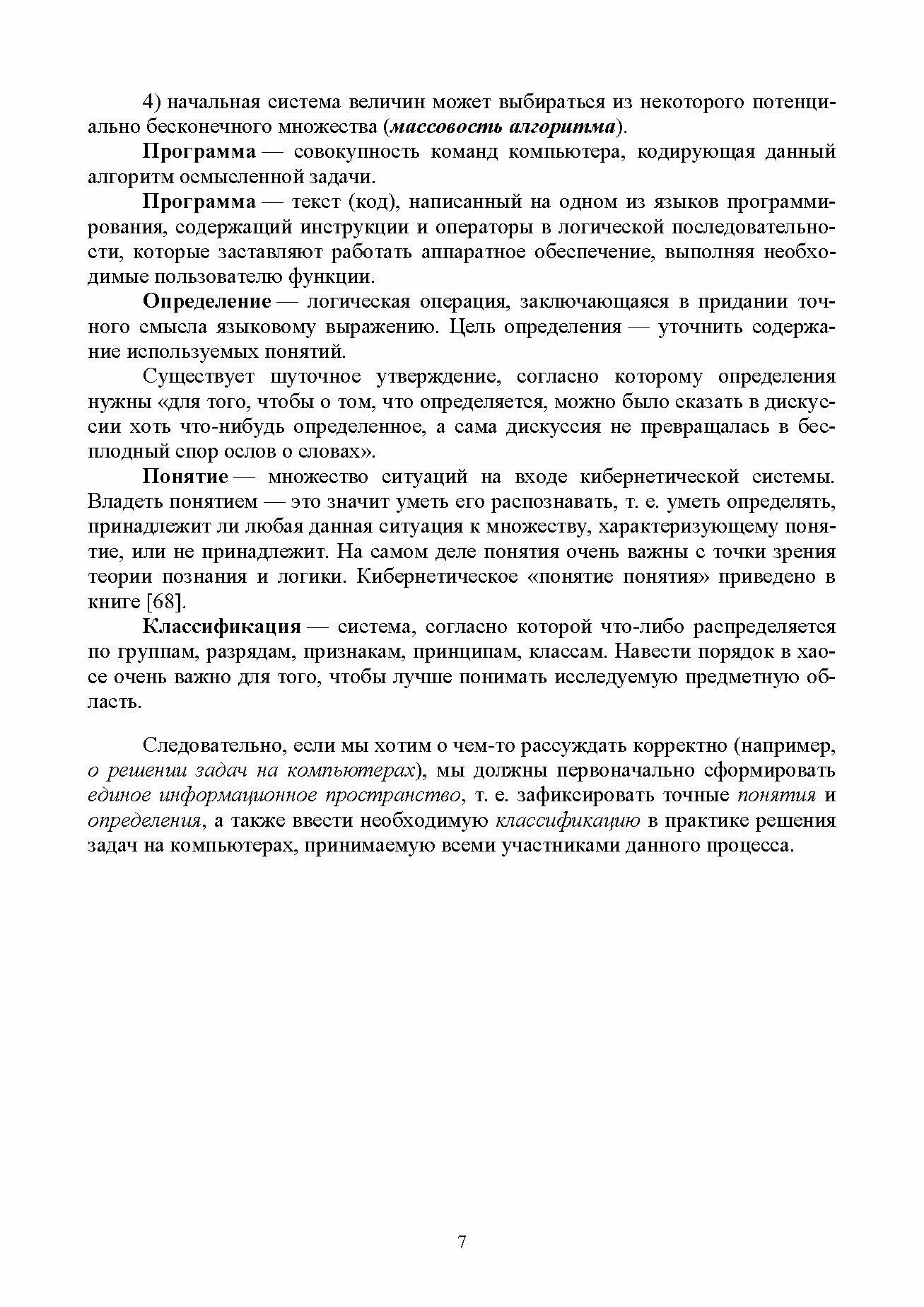 Материал учебного пособия содержит богатый набор иллюстративного материала и базируется как на оригинальных работах автора, так и на работах видных ученых А.И.Мальцева, Ю.Л. Ершова, Е.А. Жоголева, С.С. Лаврова, Н. Вирта, Д. Пойа, И. Лакатоса, Г. Майерса, Э. Дейкстры, Д.Кнута, А.Л. Брудно и др., а также на материалах, размещенных в свободном доступе в Internet.
