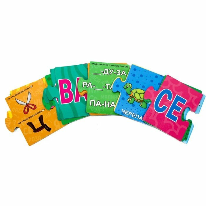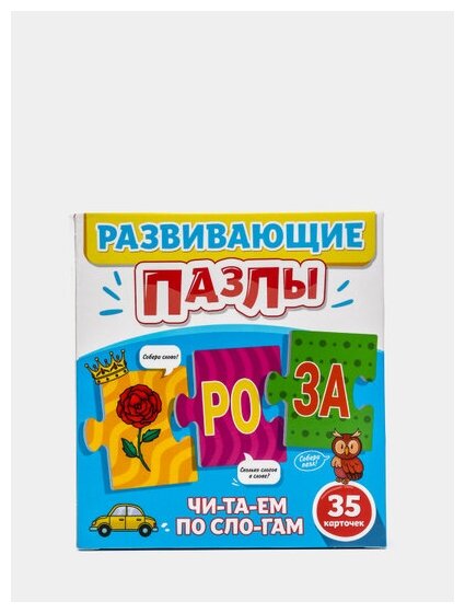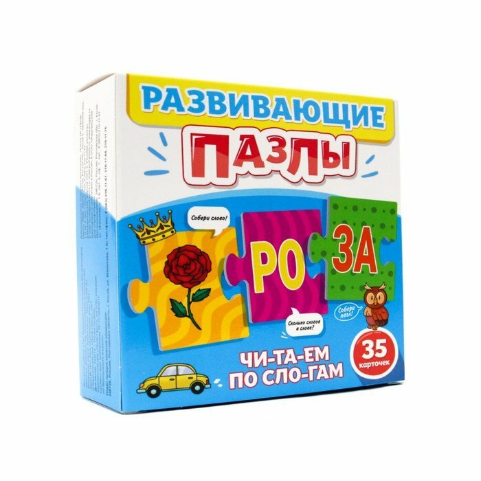 Развивающие пазлы "Читаем по слогам" - чудесная возможность помочь малышам в обучении чтению и тренировке этого навыка. Из крупных карточек-пазлов предлагается составить цепочки вида "рисунок + слово по слогам". Например, "роза + ро - за", "ракета + ра - ке - та", "гусеница + гу - се - ни - ца" и т.п. Карточки являются двусторонними, это делает игру увлекательнее, даёт ребёнку возможность выбора и простор для размышлений.