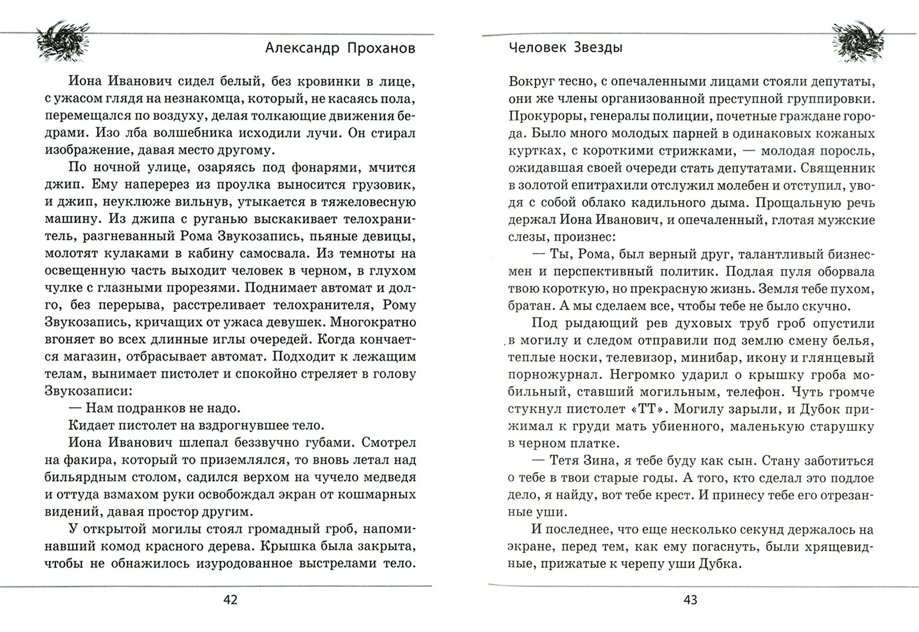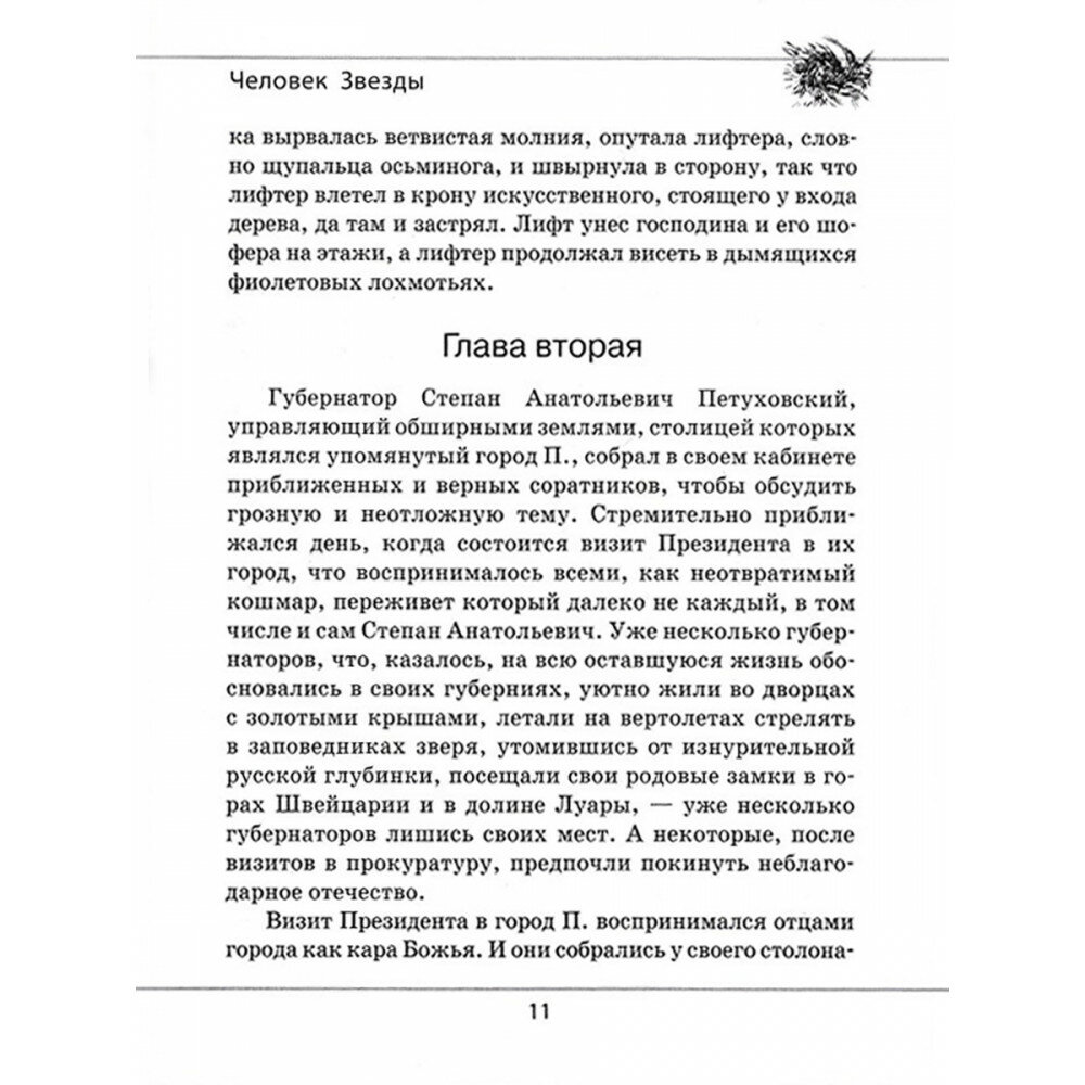 Проект "Книга снов" продолжается романом "Человек звезды", в котором представлена галерея чудовищных образов, олицетворяющих русский ад. Ей противопоставлены творцы и герои, привносящие в нашу жизнь райский смысл, - это схватка добра и зла, света и тьмы, так хорошо знакомая нам по реалиям современной политики и культуры.
