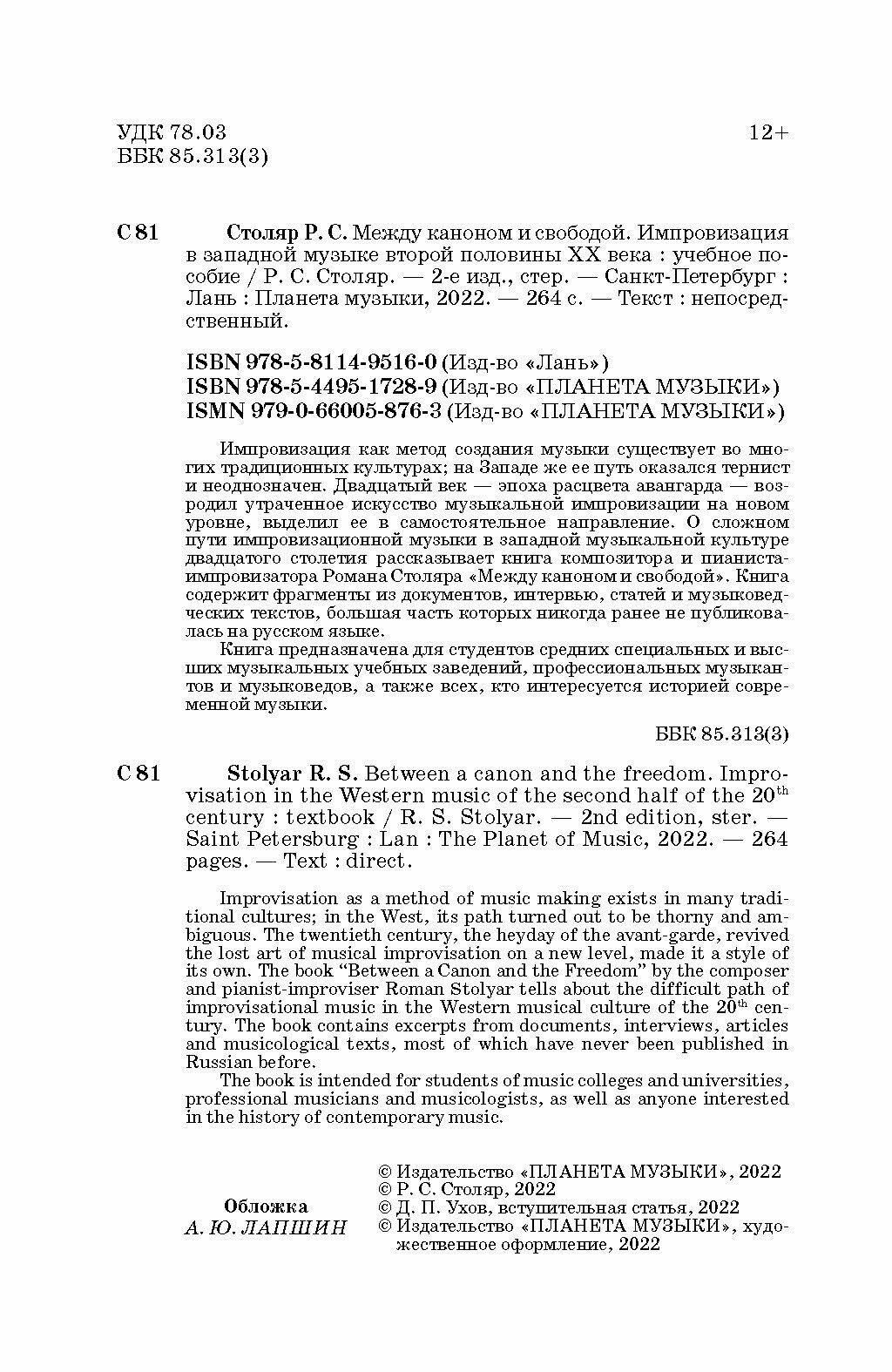 Между каноном и свободой. Импровизация в западной музыке второй половины XX века (Столяр Роман Соломонович); Планета музыки, 2022