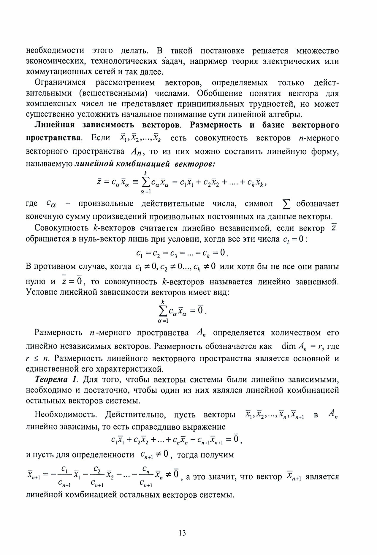Излагаются вопросы теории линейной алгебры для решения систем линейных алгебраических уравнений и линейного программирования в рамках курса математики для среднего профессионального образования.