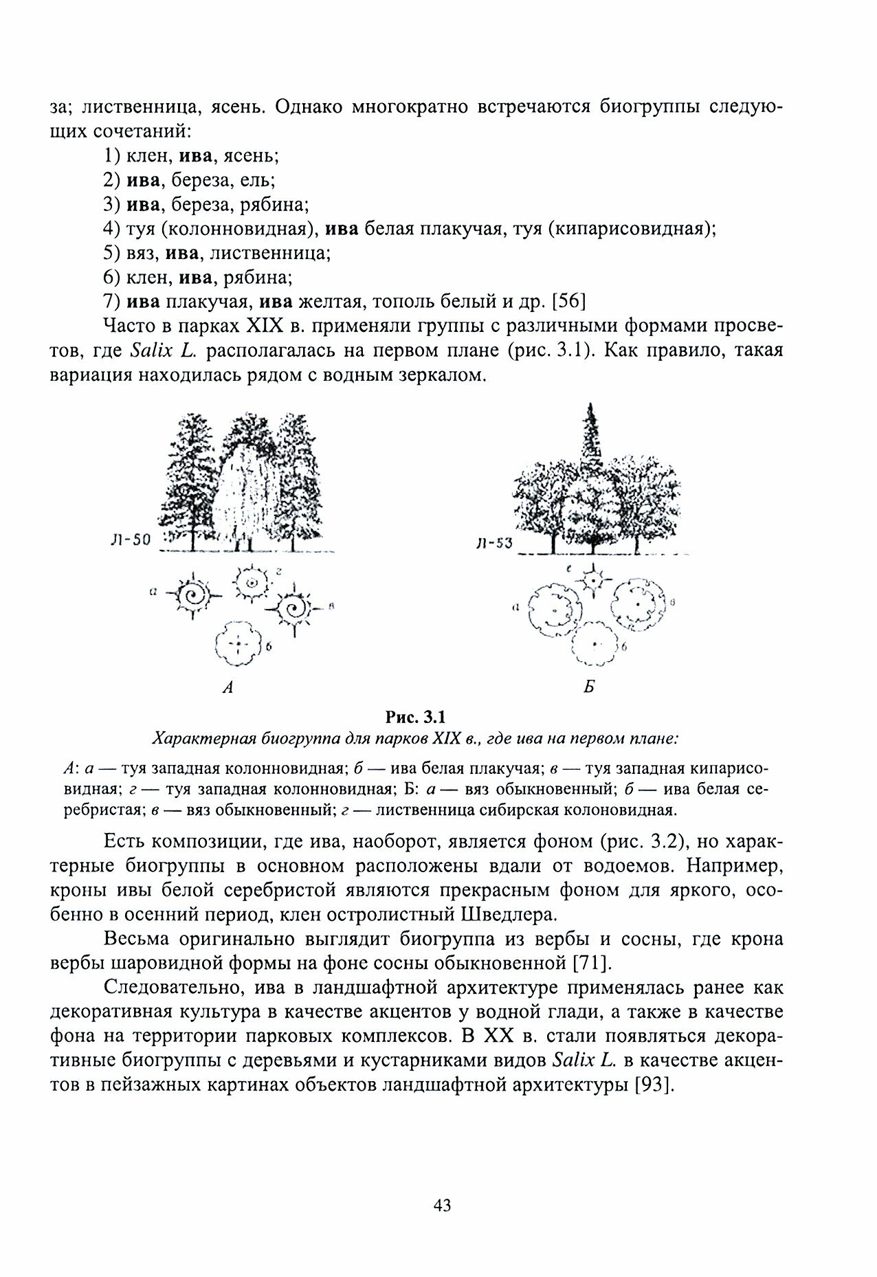 В монографии представлен научно-исследовательский материал, ре-зультатом которого является: обследование 23 видов из рода Salix, со-бранные на одной территории с различными участками по освещенности и залеганию грунтовых вод; установлен процент приживаемости ив в условиях экстремальной посадки при температуре воздуха +26...+30°С; оценена динамика сезонного роста по видам; выявлена роль рода Salix в декоративно-эстетическом образе объектов ландшафтной архитектуры; определены особенности летнего размножения и укоренения черенков S. glauca L., Salix alba L., Salix Erythroflexuosa I. V.Belyaeva, S. purpurea L., S. fragilis L. Bullata, Salix schwerinii E. Wolf (S. schwerinii x S.udnesis); разработаны устойчиво-декоративные модели на основе видов Salix для территорий с различными ландшафтными условиями.