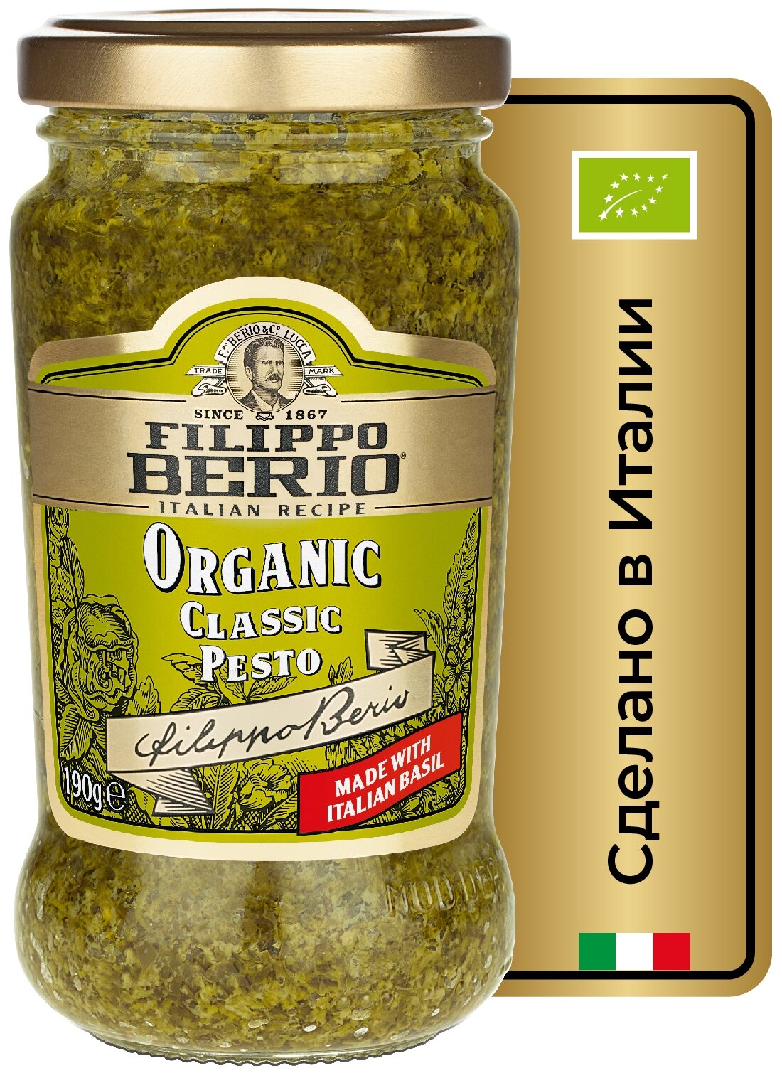 Приготовлен на основе свежего лигурийского базилики и оливкового масла экстра вирджин (Extra Virgin) Filippo Berio. Классический соус "Песто" придает изысканный вкус пасте, а также используется как сопровождение к блюдам из птицы, сэндвичам и рулетам.